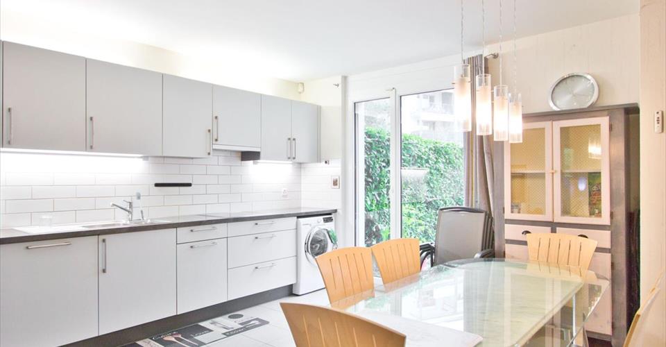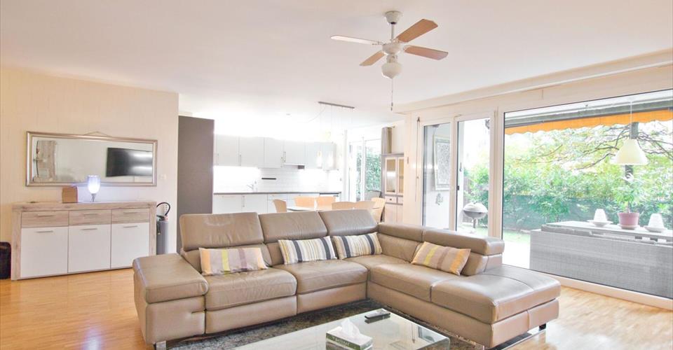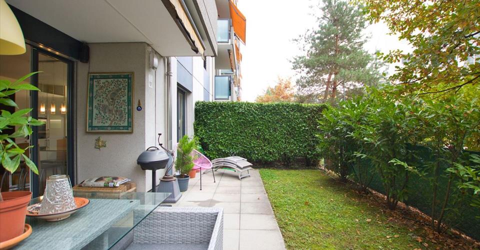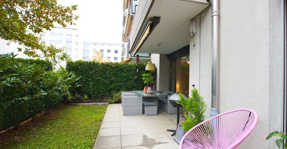 Situé dans un quartier calme de Genève, cet appartement est au rez-de-jardin dans un immeuble Minergie et récent à Châtelaine. Ce bien est composé d’une belle cuisine ouverte, d’un joli séjour avec accès à la terrasse et jardin. Il y a deux chambres dont une chambre parentale avec salle de bains et une salle de douches pour la deuxième chambre. Année de construction : 2010 Surface PPE : 108 m2 Surface terrasse : 22 m2 Surface jardins : 22 m2 + 22 m2 Surface de vente : 119,73 m2 Nombre de pièces : 4 Nombre de chambre : 2 Salle de bains : 1 Salle de douches : 1 Chauffage : Au sol, gaz et PAC Cave : 1 Parking : 1 place ext. en sus CHF 30’000.- Disponible : A convenir Il se compose ainsi : 1 cuisine ouverte, 1 séjour, 1 terrasse, 2 jardins, 1 salle de bains, 1 salle de douches, 2 chambres. Atouts : proche des transports publics et commerces, terrasse, jardins, à 10 minutes des Nations, à 7 minutes de l’aéroport, immeuble récent, Minergie. Prix de vente : CHF 1’350’000.- + CHF 30’000.- parking Pour les visites, veuillez contacter Sidney 7/7 SEGIMO GROUPE IMMOBILIER Agence immobilière Suisse romande Visitez notre site www.segimo.ch Visitez notre promotion : www.cdfardon.ch Tél. : 0848 007 001