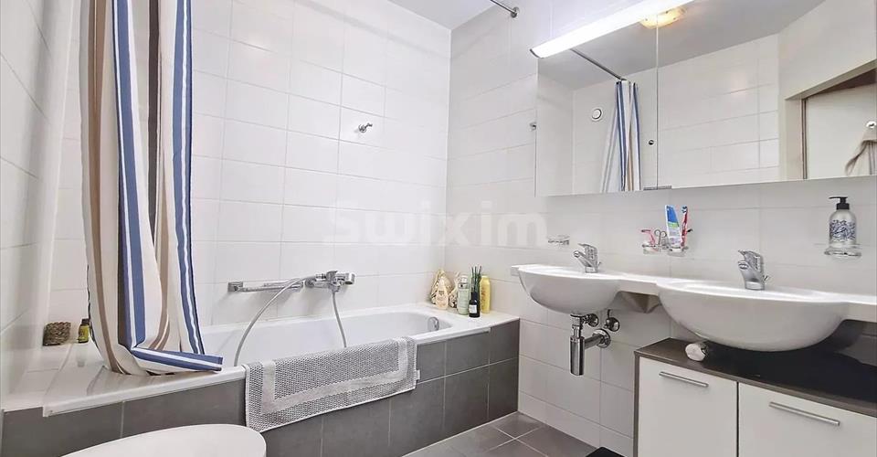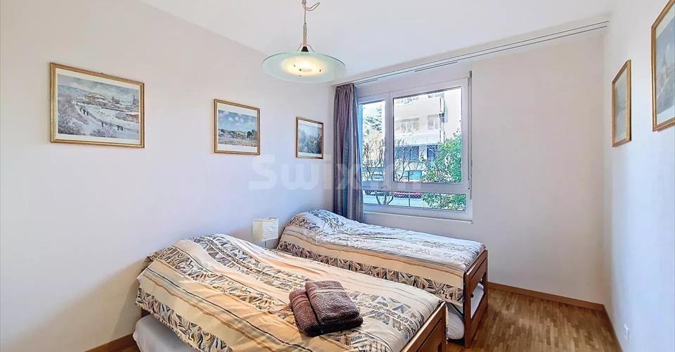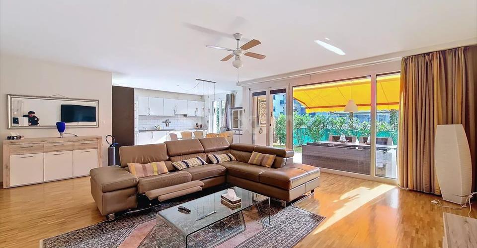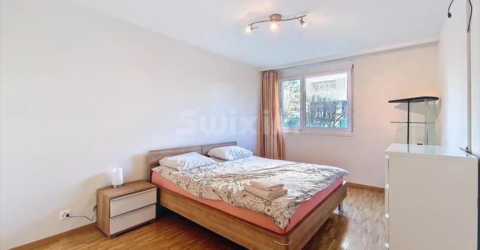Réf 3903 MC : Découvrez ce cosy 4 pièces traversant aux beaux volumes et prestations confortables, un hall d’entrée dessert 2 chambres, 2 salles de bains / douche et WC, plusieurs armoires intégrées côté nuit. Côté jour le hall est ouvert sur le salon / cuisine baignés de lumière par de larges baies vitrées exposées plein sud. Deux jardins clôturés et une terrasse de chaque côté de l’appartement lui confèrent de vrais atouts, idéal pour animaux de compagnie et profiter du calme du quartier verdoyant. A noter le quartier est très calme et l’on entend pas de bruit même à l’extérieur et fenêtres ouvertes pour cet appartement situé en rive droite. Immeuble récent au sein d’un environnement calme et très bien connecté aux transports en communs et infrastructures sportives. Des panneaux solaires et ventilation double flux sont présents dans le batiment de 2009 aux normes minergie. Les charge de PPE sont de 540 CHF mensuel. Une place de parc (50’000 CHF) et une cave complètent le bien. Possibilité d’être éligible au casatax.