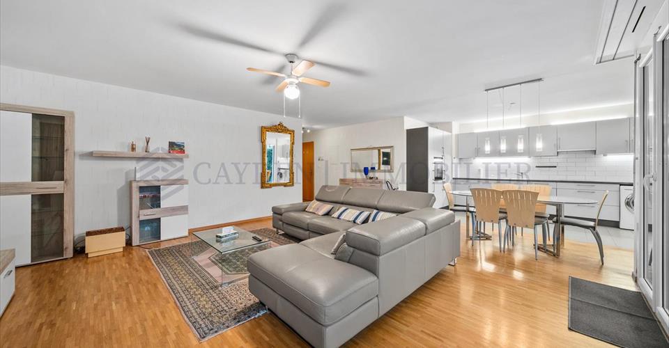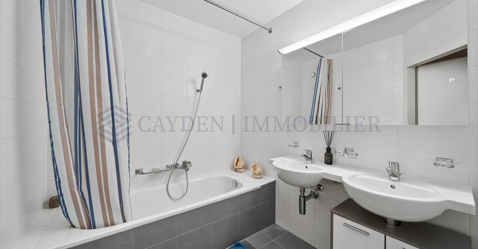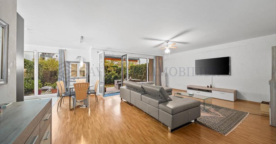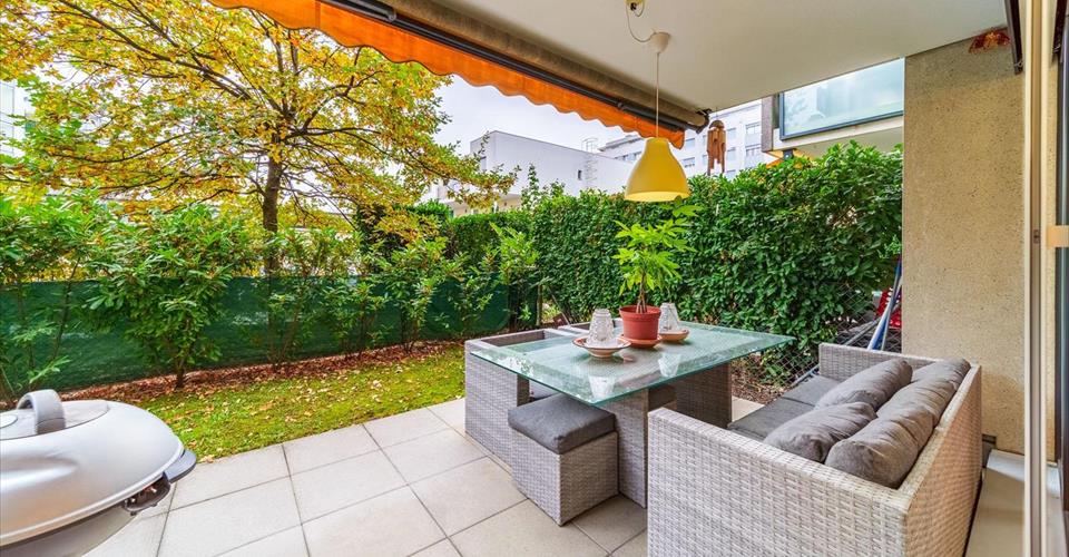Situé à Chatelaine, à proximité de toutes les commodités de la ville, des commerces, écoles et transports, cet appartement est une véritable opportunité à saisir ! Il est traversant, charmant et lumineux. Construit en 2010 dans un immeuble classé minergie, ce bel appartement est en très bon état car fut soigneusement entretenu et ne nécessite d’aucunes rénovations. Ses nombreux rangements et sa disposition judicieuse permettent d’allier parfaitement goût et confort. Les espaces de vie y sont généreux et son emplacement en rez-de-jardin lui permet un agréable accès à ses deux jardins tout au long de l’année. De plus, en face d’une impasse, sa localisation est idéale car très calme et sans vis-à-vis. L’appartement se distribue comme suit : – Hall avec placards encastrés – Une cuisine ouverte entièrement équipée et fonctionnelle – Un spacieux séjour avec accès à la terrasse/ au jardin – Une salle de douche avec WC – Un couloir avec rangements intégrés – Une première chambre – Une chambre parentale en suite avec sa salle de bain double vasque et ses WC L’appartement est vendu avec une place de parking extérieure en sus à 30’000 CHF et de nombreuses places visiteurs sont disponibles devant le bâtiment. Contactez nous au plus vite pour organiser une visite des lieux !