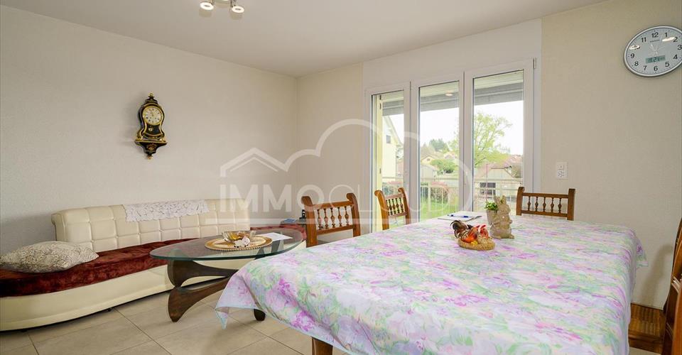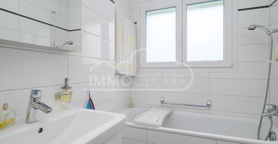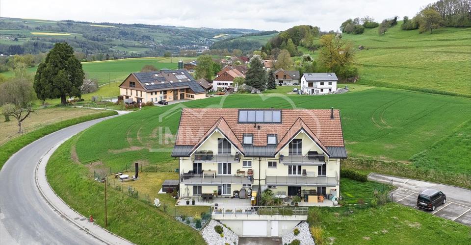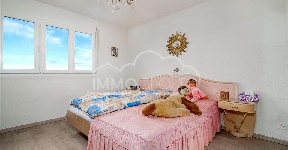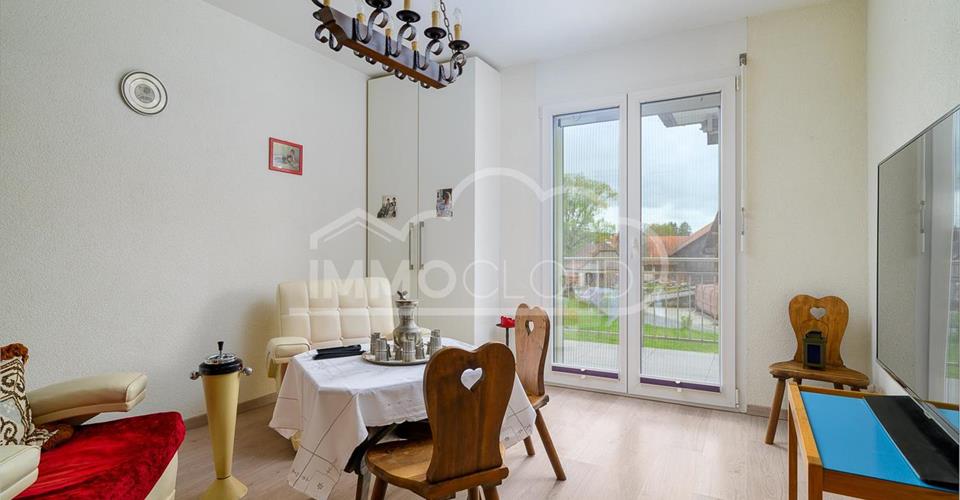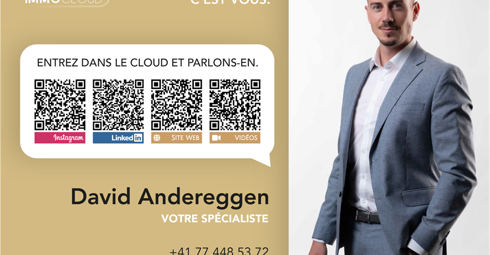 Situé au 1er étage d’une petite PPE récente, ce magnifique appartement de 4.5 pièces offre une surface habitable d’environ 102m² et bénéficie d’un cadre de vie paisible et lumineux. Dès l’entrée, vous découvrirez un spacieux hall distribuant trois chambres, dont une belle suite parentale avec salle de douche privative et lavabo à double vasque. L’une des chambres bénéficie également d’un accès direct au vaste balcon de 20m², idéal pour profiter des beaux jours. La cuisine ouverte et la salle à manger baignent de lumière naturelle et s’ouvrent harmonieusement sur le balcon, offrant un très joli dégagement et une atmosphère conviviale. Le bien est complété par une salle de bains avec baignoire et de belles prestations techniques, telles que des fenêtres en triple vitrage et des panneaux solaires en toiture, assurant confort et efficacité énergétique ainsi que des charges maitrisées. Quelques points forts de ce logement rare dans la région : – Suite parentale avec salle de douche privative – Grand balcon d’environ 20m² – Excellente exposition Sud-Ouest – PPE récente avec panneaux solaires et triple vitrage – Espaces de stationnement intérieurs et extérieurs Pour votre confort, une grande place de parc intérieure ainsi qu’une place de parc extérieure sont disponibles en sus du prix de vente pour CHF 40’000.- au total. Ne manquez pas cette opportunité de vivre dans un cadre serein et moderne ! Contactez-nous dès aujourd’hui pour organiser une visite ou obtenir davantage d’informations : Immocloud sàrl David Andereggen Co-fondateur et associé Brevet Fédéral Immocloudsarl.ch