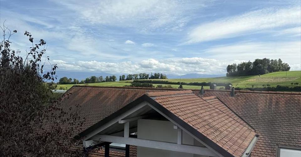 Appartement de 4 pièces sous les combles Charmant appartement de 4 pièces composé comme suit: Une cuisine entièrement agencée et équipée ouverte sur le séjour 3 chambres à coucher dont une avec armoires murales Une salle de douche/WC Une salle de bain/WC équipée d’un lave-linge et sèche-linge, laissés à bien plaire Un balcon Une cave L’immeuble se compose de 6 appartements, chacun bénéficiant de sa propre entrée indépendante. Une aire de jeux est également mise à disposition pour les enfants. Une place de parc intérieure à CHF 120.-/mois en sus du loyer. Pour les visites, merci de bien vouloir prendre contact avec notre agence ou par courriel