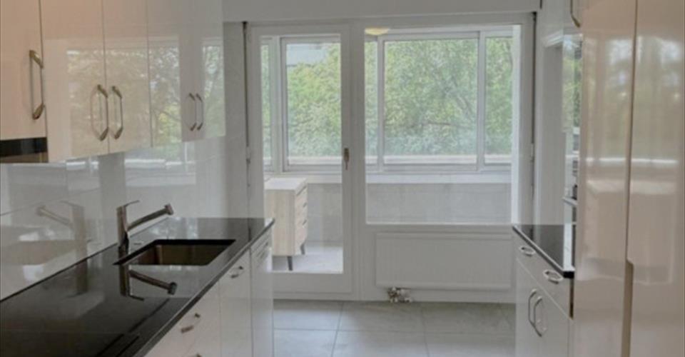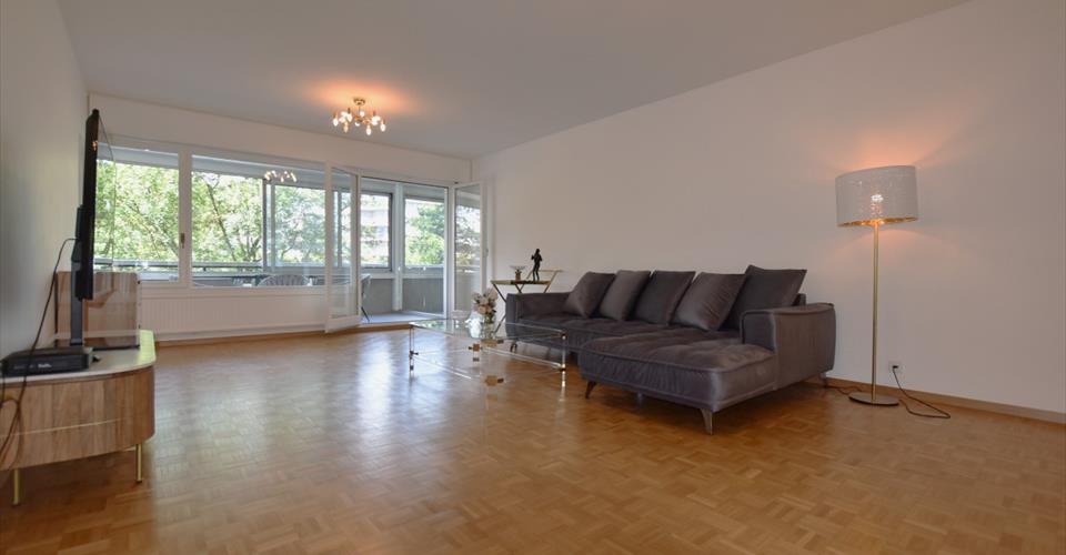 Appartement de 124 m2 entièrement rénové et meublé, tout proche de la ville et dans la tranquillité. Gare du Léman Express à 900 m. Prestations de luxe : 2 piscines chauffées : intérieure et extérieure avec sauna, douches (équipement digne d’un 5 étoiles). Magnifique parc. Disponible immédiate Distribution : 4e ÉTAGE : – 1 hall d’entrée avec placard intégré – 1 salon – 2 loggias dont l’une avec vitres coulissantes, où est aménagée la salle-à-manger – 1 cuisine équipée neuve avec électroménager de luxe – 2 chambres à coucher avec placards intégrés – 2 salles de douche à l’italienne avec WC – 1 WC séparé ANNEXES : – 1 cave – 1 box (CHF 250.-/mois en sus) EXTÉRIEUR : – 1 magnifique parc – 1 piscine extérieure chauffée – 1 magnifique piscine intérieure chauffée CONDITIONS : – charges : CHF : 250.-/mois (non comprises dans le loyer) – bail d’un an renouvelable avec 3 mois de garantie bancaire (ou garantie par une assurance)