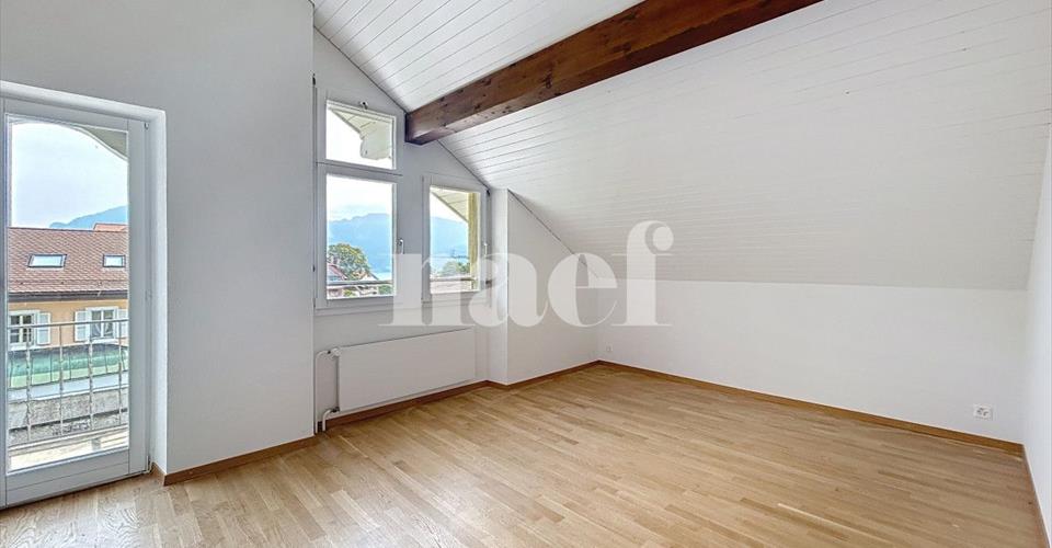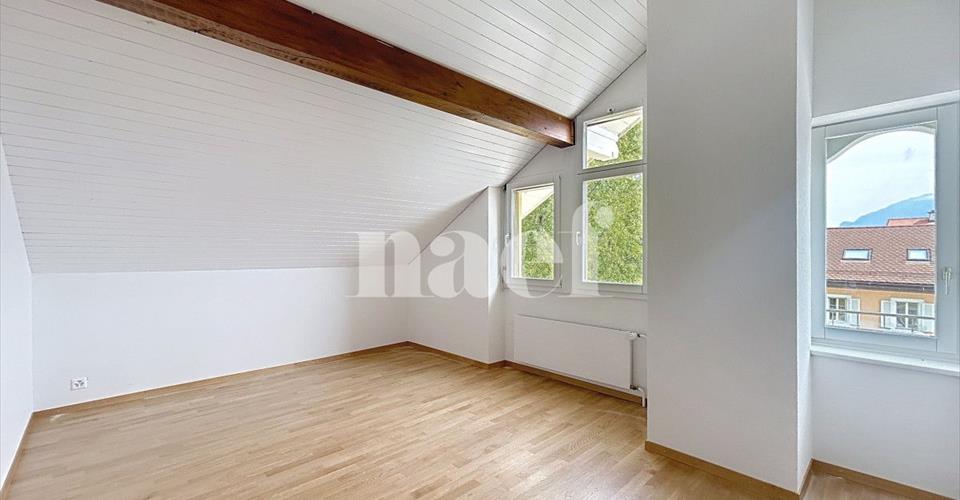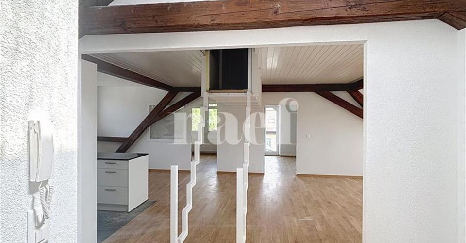 Coup de cœur ! Situé à Chexbres, ce magnifique appartement de 4 pièces, niché dans les combles, a été entièrement rénové avec des matériaux de qualité. Il séduit par son charme, ses poutres apparentes et sa grande hauteur sous plafond. Il se compose comme suit : – Hall d’entrée avec armoires intégrées, accessible par un escalier ; – Grande salle de bains avec douche, WC, et possibilité d’installer une colonne lave-linge / sèche-linge ; – WC séparé ; – Cuisine entièrement agencée avec îlot central, plan de travail en granit, hotte de ventilation intégrée, ouverte sur le séjour et la salle à manger ; – Vaste séjour, lumineux et spacieux ; – Deux grandes chambres, dont une avec accès au balcon ; – Un bureau / dressing ou petite chambre idéal pour un enfant ; – Un espace de rangement dans les combles, idéal pour vos affaires personnelles ; – Un jardin mis à disposition de l’ensemble des locataires de l’immeuble. Un bien rare, alliant charme et confort, à découvrir sans tarder. Emplacement privilégié : situé au centre de Chexbres, cet appartement vous place à proximité immédiate des commerces, des entrées/sorties d’autoroute et de la gare, facilitant ainsi tous vos déplacements. Un grand parking public est à votre disposition au pied de l’immeuble pour plus de commodité. En prime, vous aurez la possibilité de louer un garage individuel, non inclus dans le loyer, à CHF 160.- par mois. L’appartement étant en cours de rénovation, les photos ne sont pas représentatives du résultat final. Pour toutes visites, vous pouvez contacter nos services.