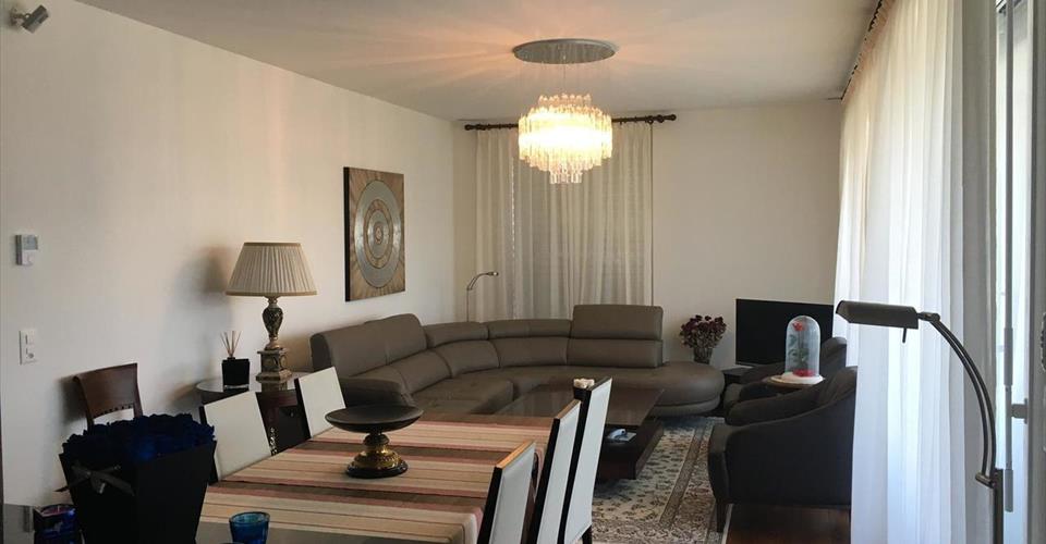 Dans un quartier résidentiel de Cologny, très joli appartement entièrement meublé de 4 pièces se situe au 5 ème étage d’un immeuble sécurisé avec ascenseur et se compose comme suite : • Hall d’entrée • Séjour / salle à manger avec des grandes baies vitrées donnant sur balcon d’env. 25 m2 vitré offre une pièce supplémentaire confortable pour votre habitat. Un vitrage de balcon protège contre l’eau, la neige, le vent et la poussière sans restreindre son champ de vision. Le vitrage de balcon réduit également le bruit et économise l’énergie . • 1 cuisine moderne entièrement équipée et aménagée ouverte sur le séjour • 2 chambres à coucher • 1 salle-de-bain et WC • 1 salle de douche avec lavabo, WC comprenant une machine à laver et un seche-linge •1 buanderie commune • En annexe : 1 place de parking en sous-sol, 1 cave. Prestations de standing, complètes et soignées. Les commerces, les écoles et les transports en commun sont rapidement accessibles.