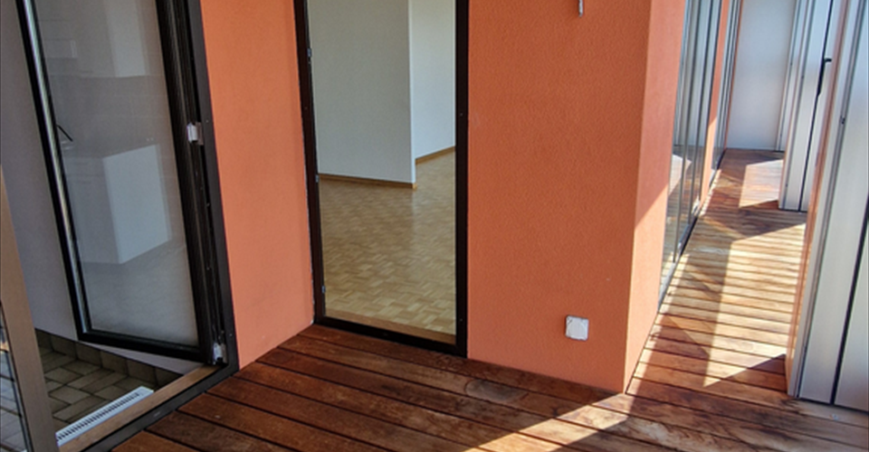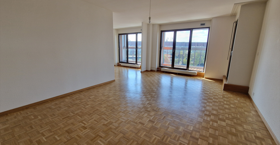 IMPORTANT : une visite groupée sera organisée sur sélection de dossiers ; nous vous remercions de postuler ou poser vos éventuelles questions via la plateforme FLATFOX.CH Les candidatures ne seront pas traitées par téléphone ou par courriel. A LOUER – logement lumineux au 6ème étage, composé comme suit : – hall avec dégagement et armoires – séjour avec alcôve / salle à manger – wc visiteurs – salle de bain avec wc – une chambre – cave – deux loggias Possibilité de stationnement en supplément.