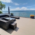Le séjour comprend un grand canapé, une télévision et un coin repas pour 6 personnes.