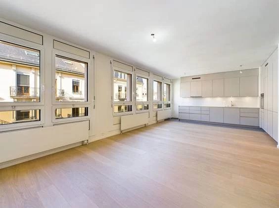 VISITE VIRTUELLE EN BAS DE PAGE Situé à proximité immédiate du Quartier des Banques, des Rues Basses et des rives du Rhône, ce bel appartement contemporain est situé au 4ème étage d’un immeuble sécurisé et dispose de 4 pièces dont deux chambres à coucher. Entièrement rénové avec goût, il bénéficie de belles prestations telles qu’une cuisine ouverte équipée et agencée avec de l’électroménager de qualité, un beau parquet et de nombreux rangements. Il se distribue comme suit: Espace jour: – Hall d’entrée. – Cuisine ouverte sur le salon, agencée et équipée avec électroménager Siemens. – Grand séjour lumineux. – Couloir avec de nombreux rangements et raccordement pour le lave-linge et sèche-linge. – Toilettes visiteurs. Espace nuit: – Salle de douche. – Chambre parentale avec salle de bain et toilettes, ainsi que des placards – 2ème chambre à coucher, toute aussi spacieuse, avec niche intégrée et de nombreux placards. Une cave vient compléter ce bien. Possibilité de louer une place de parking en sus. L’immeuble, qui dispose d’un ascenseur, d’une buanderie commune et d’un garage à vélos, est idéalement situé à proximité immédiate des transports publics (tram et bus) et à 10 mn à pied de la gare Cornavin et de toutes les commodités.