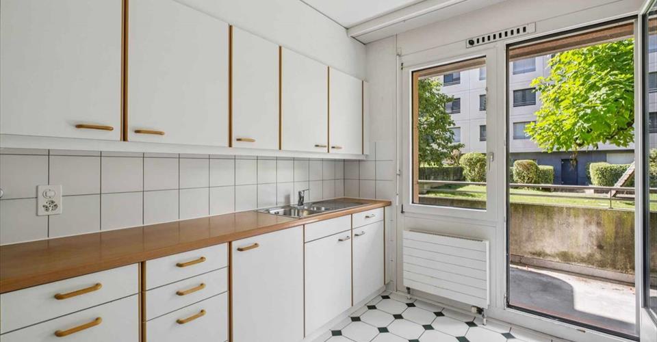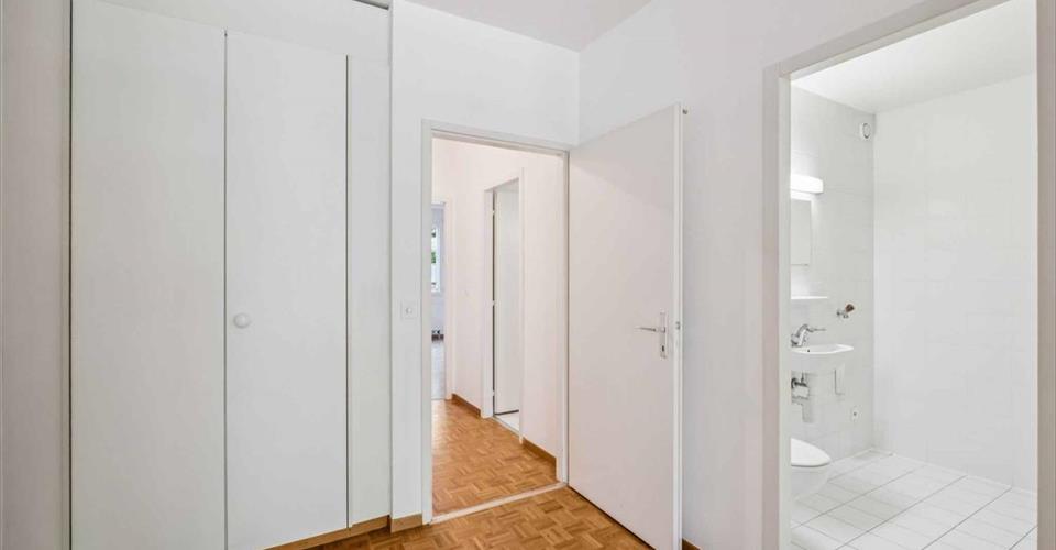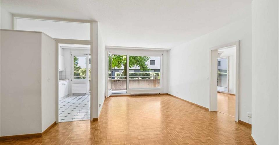 Cet appartement de 4 pièces au rez inférieur se compose comme suit : – un hall d’entrée ; – un wc visiteur ; – deux chambres à coucher dont une avec salle de douche et wc ; – un séjour ; – une cuisine ; – une salle de bain ; – un balcon. Une place de parking intérieur est disponible au prix de CHF 150.- par mois. Visite à convenir avec la réception