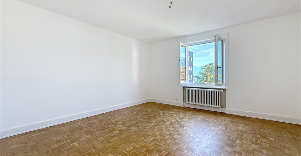 4 pièces d’environ 90 m2, situé au 2ème étage sans ascenseur, composé comme suit: Entrée avec armoires murales, séjour avec balcon aménageable, cuisine fermée partiellement agencée, trois chambres, salle de bains, WC séparé Caractéristiques complémentaires: Cave Disponible de suite Pas de place de parc privative Loyer brut: CHF 1590.00 IMPORTANT: Bail à durée déterminée jusqu’au 31.12.2026 non renouvelable Renseignements par téléphone: Bernard Nicod, Séverine Baccaro (heures de bureau)