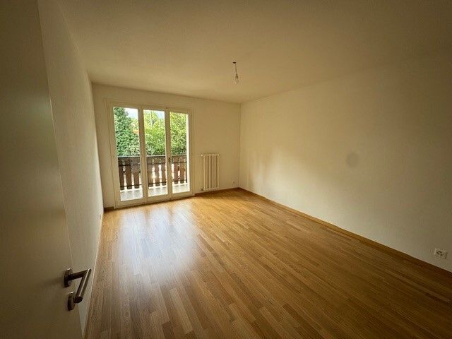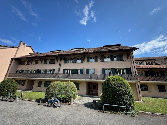 Appartement de 4 pièces au 1er étage dans un petit immeuble de seulement 2 étages, calme et familial dans un cadre verdoyant et qui se compose comme suit : – Un vaste hall d’entrée avec WC visiteurs – Une cuisine totalement agencée et équipée (réfrigérateur, plaques de cuisson, four, lave-vaisselle) – Un grand séjour avec balcon donnant sur un vaste jardin privé appartenant à la résidence – Deux chambres avec balcon – Une salle de bains avec WC Une cave complète ce bien. VISITE : nous vous prions d’envoyer votre dossier directement sur flatfox.ch, une visite groupée sera organisée, UNIQUEMENT SUR DOSSIER. En cas d’intérêt, merci de bien vouloir télécharger sur notre site internet allianz immobilier le formulaire de demande de location et transmettre votre candidature sur le site flatfox.ch directement.