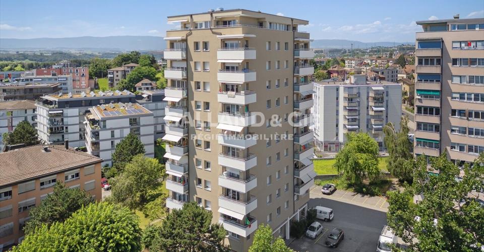 Idéalement situé au cour de Renens, cet immeuble résidentiel profite d’une localisation privilégiée, parfaitement adaptée à une vie urbaine confortable et pratique. À seulement quelques minutes à pied de la gare CFF de Renens, desservie par de nombreuses lignes régionales et nationales, et proche de l’accès autoroutier de Crissier, vous bénéficiez d’une mobilité optimale pour vos déplacements quotidiens, que ce soit en transports publics ou en voiture. Les bus TL situés à proximité immédiate complètent parfaitement cette accessibilité. L’immeuble se trouve également au cour d’un quartier vivant et dynamique : commerces variés, restaurants, écoles, services publics et infrastructures sportives se trouvent à deux pas, offrant un cadre de vie fonctionnel et agréable. Au 4? étage, l’appartement séduit par sa vue dégagée sur la ville, sans vis-à-vis, garantissant une belle luminosité et une atmosphère apaisante au quotidien. Idéal pour un couple, une personne seule ou un jeune foyer, il combine la tranquillité d’un logement bien situé avec les atouts d’un environnement urbain complet. L’immeuble, parfaitement entretenu, reflète une ambiance conviviale et pratique, où chaque détail est pensé pour faciliter le quotidien de ses résidents. Un lieu de vie alliant centralité, confort et qualité de vie, au cour d’une commune en plein essor, à seulement quelques minutes de Lausanne. Ce 4 pièces au 11ème étage se compose comme suit: – une cuisine agencée avec lave-vaisselle – un séjour – trois chambres-à-coucher dont une avec une salle de douche – une salle-de-bains/WC – deux balcons