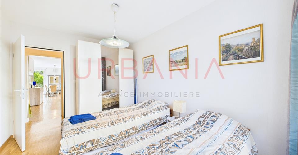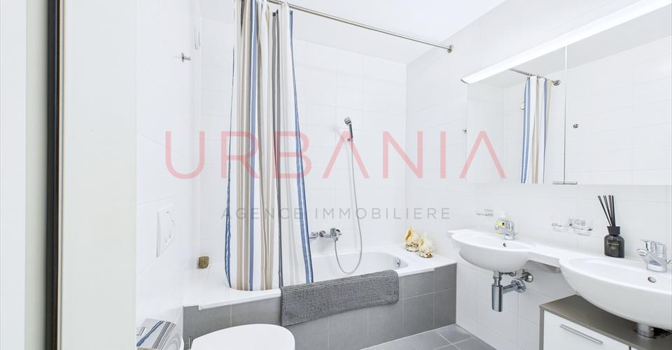 Situé dans une résidence sécurisée et parfaitement entretenue, au calme tout en restant proche des commodités et de l’aéroport, ce bel appartement de 4 pièces d’une surface généreuse de 108 m² PPE offre un cadre de vie idéal. Vous apprécierez notamment : Un grand séjour lumineux avec accès direct à une terrasse de 20 m² Deux chambres confortables, dont une suite parentale avec salle d’eau privative Une deuxième salle d’eau avec WC Un bâtiment certifié Minergie, gage de performance énergétique De faibles charges mensuelles de CHF 570.- Cet appartement allie confort moderne, tranquillité et proximité des services. Visite virtuelle possible.