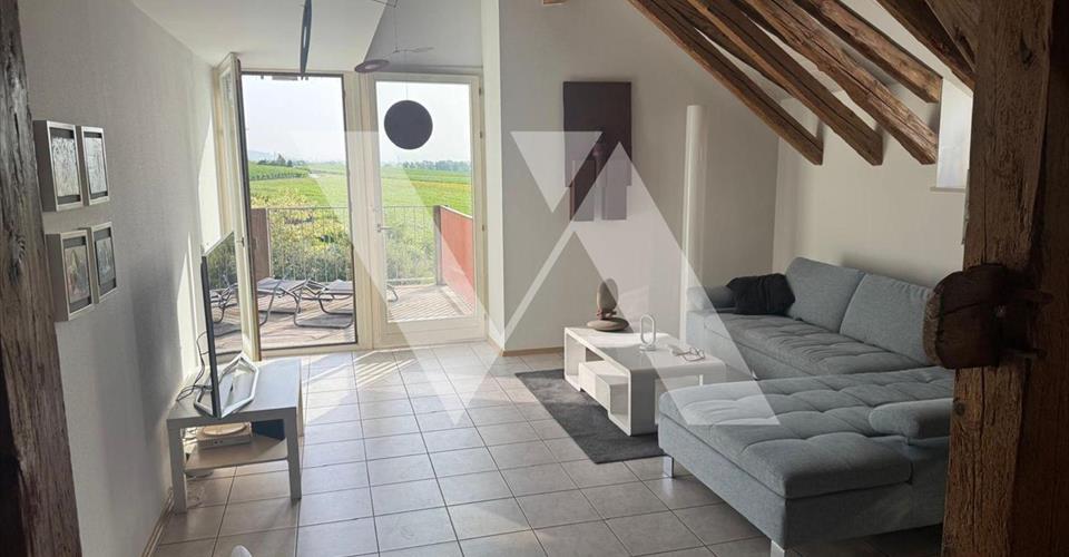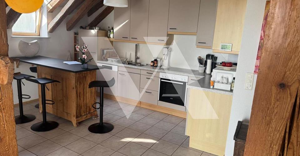 Disponibilité : 1er novembre 2025 Situé dans un environnement calme et verdoyant, au coeur d’un village de caractère, ce charmant duplex de 4 pièces allie confort, luminosité et atmosphère chaleureuse. Il se compose comme suit : 2ème étage : – Hall d’entrée – Salon avec accès au grand balcon – Cuisine entièrement équipée avec coin repas convivial – Deux chambres avec accès au balcon – Salle de bain / WC Combles : – Chambre principale avec rangements – Salle de douche / WC Une cave privative complète ce bien. L’appartement bénéficie d’une place de parking intérieure (obligatoire), au prix de CHF 160.? par mois en sus. N’hésitez pas à nous contacter pour obtenir plus d’informations ou pour organiser une visite et découvrir tout le charme de ce duplex. Important : Veuillez noter que seuls les dossiers complets seront pris en considération. Merci de nous faire parvenir : – Le formulaire d’inscription dûment rempli (https://drive.google.com/file/d/1toG5S7UGSet_WOefVbYlS7rvIubUeQ3j/view?usp=sharing) – Une attestation de l’Office des Poursuites récente (max. 3 mois) de votre lieu de résidence actuel – Vos 3 (trois) dernières fiches de salaire – Une copie de votre pièce d’identité, et de votre permis de séjour (B ou C) si applicable. Merci de présenter ces éléments pour chaque demandeur de bail !