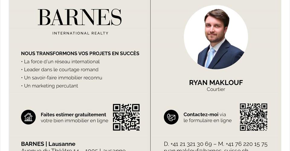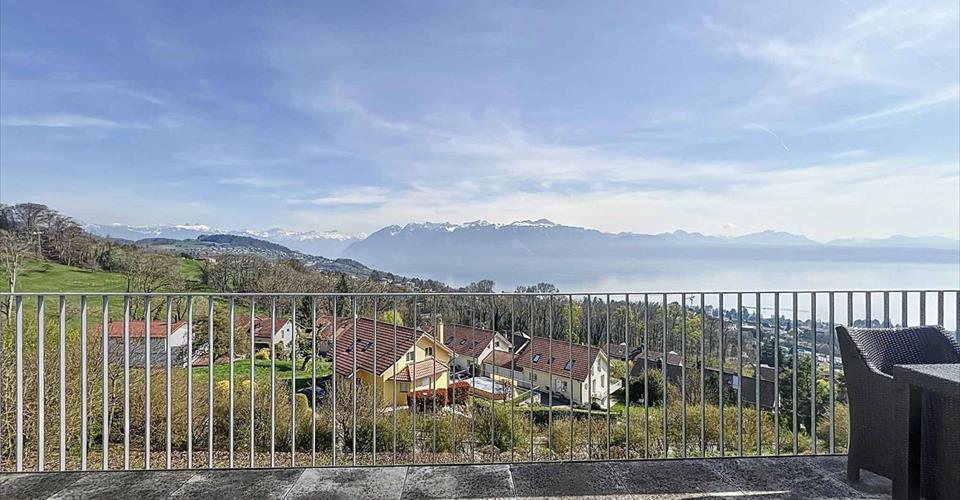 BARNES Suisse SA a le plaisir de vous présenter ce bel appartement familial de 5.5 pièces moderne avec une vue imprenable sur le lac Léman et les Alpes. L’immeuble a été érigé en deux blocs architecturaux distincts qui séparent idéalement le côté jour du côté nuit et relié par un lumineux corridor intérieur. Occupant tout l’étage, ce bien immobilier possède toutes les expositions et un ensoleillement optimal. L’espace de vie est fonctionnel et orienté vers les différents extérieurs qui profitent sans cesse de la vue lac. La cuisine, dinatoire, est entièrement équipée et bénéficie d’un îlot central ainsi que d’un réduit. La partie nuit, avec ses 4 chambres à coucher est distribuée par un couloir avec fenêtre panoramique afin de parfaire l’ambiance contemporaine omniprésente. La chambre parentale avec salle de douche profite d’une vue lac, la salle de bains avec WC et fenêtre est lumineuse. Terrasse et balcon totalisant 40m² de surface, une grande cave ainsi qu’une place de parc extérieure couverte et une place de parc non-couverte, aux prix de CHF 25’000.- et CHF 20’000.- (en sus du prix de vente) composent cet appartement d’environ 150 m² habitables. A visiter sans tarder !