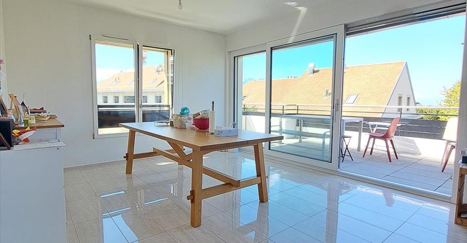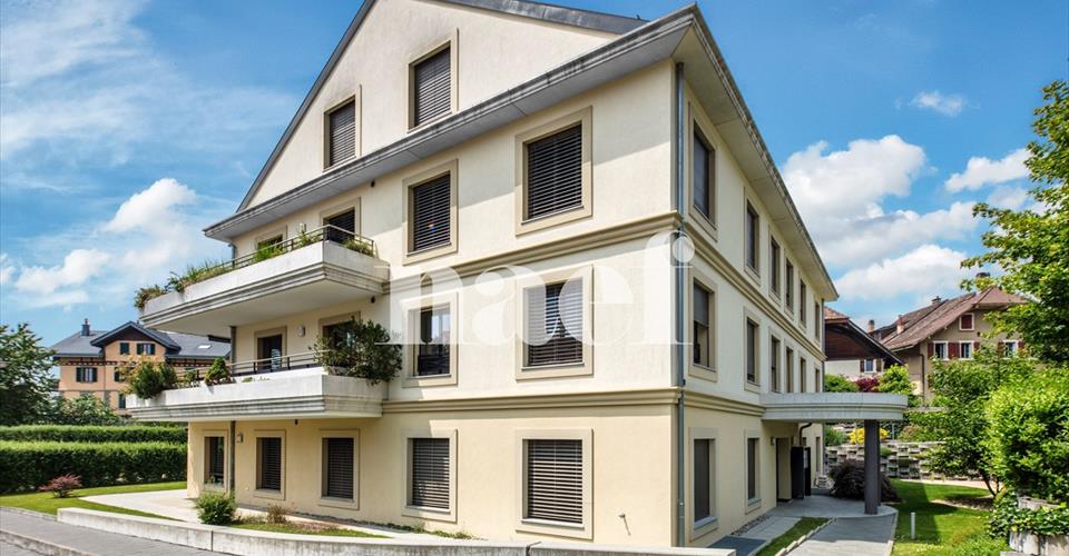 Idéalement situé à seulement 3 minutes à pied du centre du village de Blonay, cet appartement bénéficie d’un environnement résidentiel calme, tout en étant proche de toutes les commodités : commerces, gare, écoles, restaurants, etc. Ce lumineux appartement, offrant de beaux volumes et une grande hauteur sous plafond, séduit par son atmosphère sereine et sa spacieuse terrasse avec vue dégagée. La résidence se compose de 6 petits immeubles à l’architecture soignée et contemporaine. L’appartement est situé au 2ème et dernier étage, l’immeuble construit en 2017 offre une surface pondérée de 181 m². Il se compose comme suit : grand séjour lumineux avec accès direct à la terrasse, cuisine ouverte entièrement équipée et agencée, 3 grandes chambres à coucher, 1 suite parentale avec salle de douche/WC, 1 salle de bains/WC avec espace pour colonne de lavage, mezzanine idéale pour un coin bureau ou un espace de jeux, ainsi que de nombreux rangements intégrés sous l’escalier. Ce bien est complété par une grande cave avec un frigo cave à vin, ainsi qu’une place de parc intérieure. Vous avez la possibilité d’acquérir une ou plusieurs places de parc intérieures, selon vos besoins au prix de : Place de parc double : CHF 50’000.?, Place de parc simple : CHF 35’000.?. Place moto : CHF 5’000.? Parfait pour une famille ou un couple à la recherche d’un cadre de vie calme, moderne et pratique.