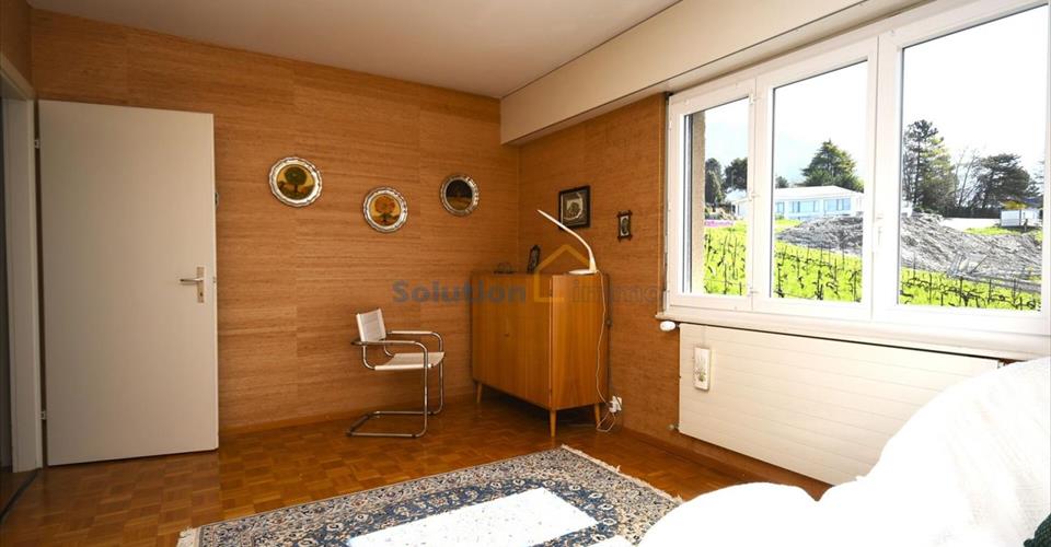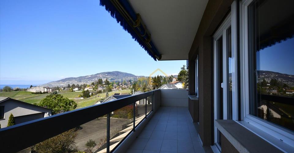 Grand appartement de 5,5 pièces avec une très belle vue sur le lac et les montagnes. Situé au 1er étage (sans ascenseur) d’une petite PPE de 4 logements répartis sur deux immeubles. Cet appartement spacieux de 5,5 pièces offre une belle qualité de vie. Proche des commodités, il constitue un cadre idéal pour une famille ou pour toute personne recherchant calme et confort. Construit en 1979, l’immeuble est bien entretenu. L’intérieur de l’appartement de qualité est resté en grande partie dans son état d’origine, offrant ainsi une opportunité de rénovation selon vos goûts. Les fenêtres en PVC, ont été remplacées il y a environ 15 ans. La surface habitable est de 116 m2, une hauteur intérieure (sol/plafond) de 2,50 m, à cela il faut rajouter la surface du balcon de 18 m2 (largeur de 1,40 m). Distribution des pièces : Entrée (9 m2) avec interphone Cuisine fermée avec coin à manger (13 m2) Vestiaire (2 m2) WC visiteurs (2 m2) Séjour (27 m2) avec cheminée et récupérateur de chaleur Coin bureau (13 m2) Salle de douches/wc (3 m2) Trois chambres avec armoires intégrées Salle de bains/wc (4 m2) Hall (7 m2) Grand balcon s’étendant sur toute la longueur du bâtiment avec 2 toiles de tente électrifiées 1 garage individuel avec porte automatique (en sus + CHF 50’000.-) 2 places extérieures (en sus + CHF 40’000.-) 1 place jardin 1 cave 1 grand galetas 1 buanderie de la PPE pour deux familles Distances : Blonay centre à 3 minutes en voiture (1100 m) Entrées autoroutières Vevey à 5 minutes (3300 m) Entrées autoroutières Montreux à 4 minutes (2000 m)