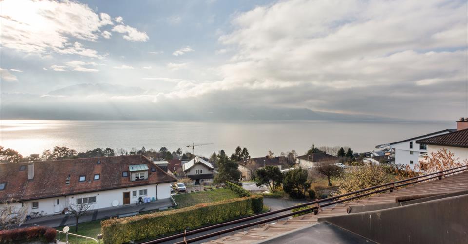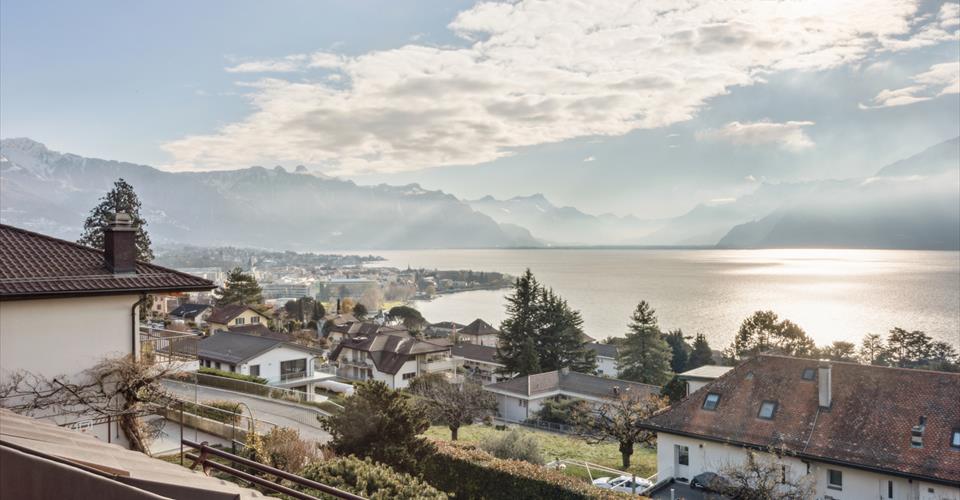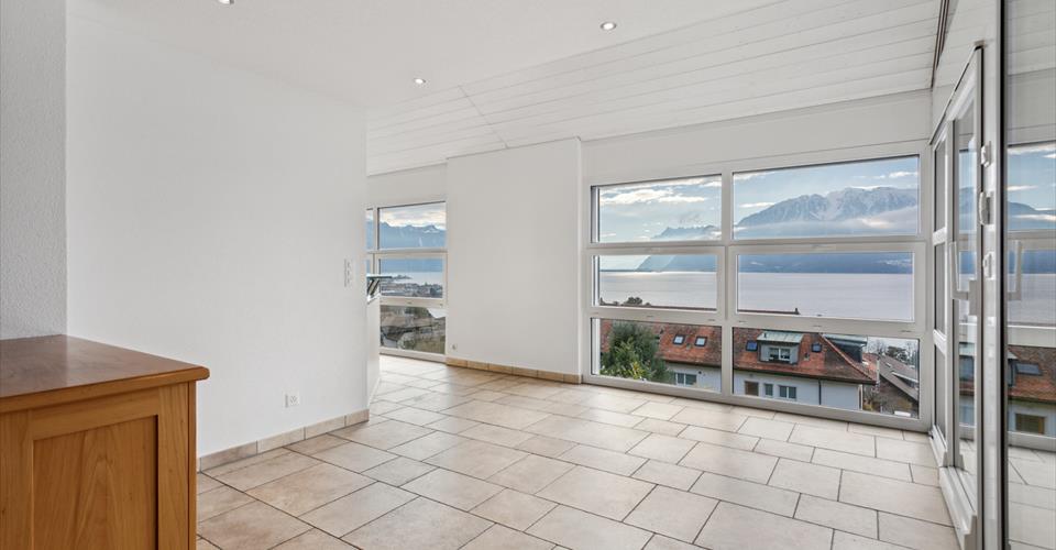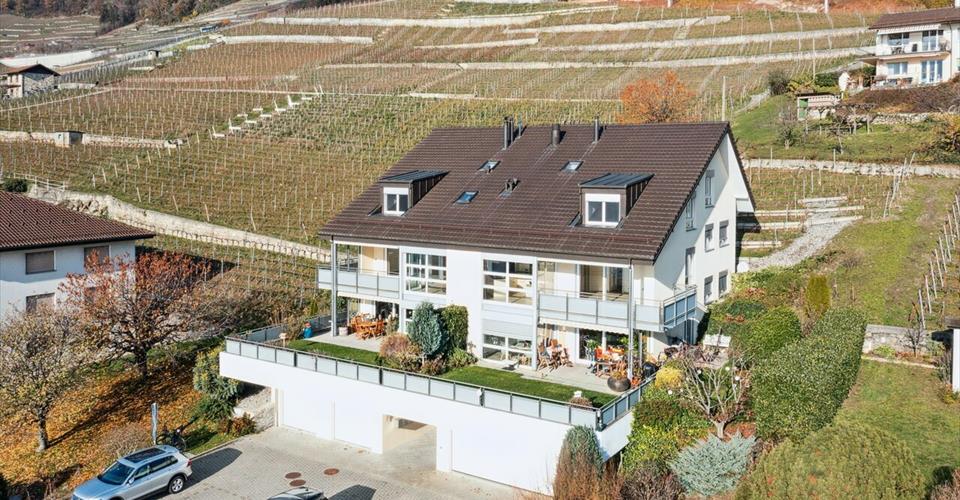 Implanté dans le charmant village de Corseaux, cet appartement en duplex profite d’une situation privilégiée dans un quartier résidentiel tranquille. Il a l’avantage de se trouver à proximité immédiate de toutes commodités et à 5 minutes en voiture du centre-ville de Vevey ainsi que de ses nombreux commerces. L’arrêt de bus est atteignable en 4 minutes à pied et la gare en 8 minutes. – Magnifique vue sur le lac et les montagnes environnantes – Petite résidence contemporaine, matériaux de qualité – 2 grands balcons totalisant environ 32 m² – Généreux volumes, belle hauteur sous plafond – Espace sauna, cave à vin, garage box Prix de vente de l’appartement : CHF 2’500’000.- Prix du garage box : CHF 120’000.- Prix de vente total : CHF 2’620’000.-