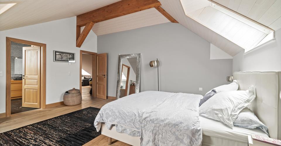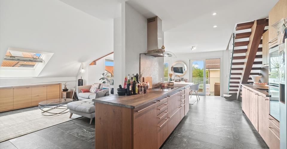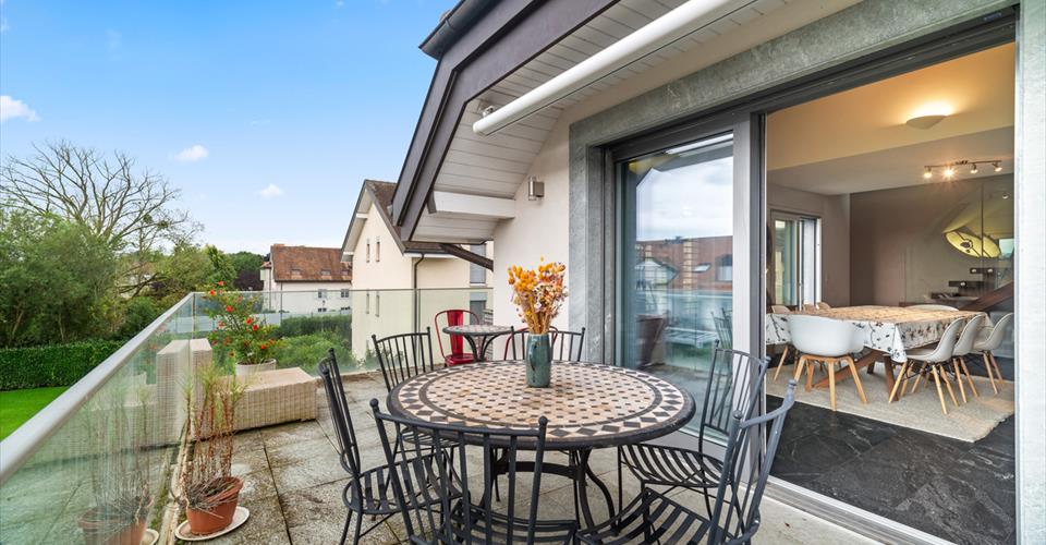 Ce très beau duplex se situe au centre de la commune prisée de Founex. Sa localisation est stratégique et offre un cadre de vie idéale à proximité directe de nombreuses commodités (école, restaurants, épicerie, centre sportif…). L’appartement se situe au dernier étage d’une résidence de standing construite en 2012 et disposant du label Minergie. Il se distingue par un style moderne et élégant, des finitions de très belle qualité ainsi qu’une luminosité omniprésente faisant de lui un cocon idéal pour une famille recherchant confort et sérénité. Les pièces de réception comprennent un vaste salon, une belle cuisine ouverte ainsi qu’un coin salle-à-manger très convivial. Cet espace dispose d’un triple accès à un beau balcon en enfilade exposé plein Sud. A ce même niveau se trouve trois chambres spacieuses et deux salle-de-bains. L’étage offre une généreuse surface ouverte avec un coin détente doté d’une belle cheminée, mais aussi une grande suite parentale avec salle-de-bain en suite et un dressing. L’appartement dispose aussi d’une grande cave de 15m2, d’une cave à vin climatisée ainsi que de deux places de parc en sus. Enfin un carnotzet et une grande salle polyvalente / fitness est mise à la disposition des occupants de la résidence.