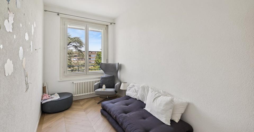 Idéalement situé sur la rive droite, dans l’une des plus prestigieuses résidences de Genève proche du lac et de l’hyper centre ainsi que des Organisations Internationales, cet appartement de 107 m² jouit d’une vue partielle sur le lac et sur le parc de la résidence. Il se compose comme suit: Une grande pièce de vie composée d’un salon et d’une salle à manger avec accès à un balcon Une grande chambre avec accès à un balcon une cuisine fermée avec accès à un balcon Deux chambres d’enfant Un WC visiteur une salle de douche avec colonne de lavage Deux agréables balcons totalisant plus de 20 m² vous invite à profiter du grand parc et d’une vue partielle sur le lac. Cette résidence de standing vous permettra de bénéficier d’un accès direct aux belles promenades sur les quais et du parc de la copropriété.