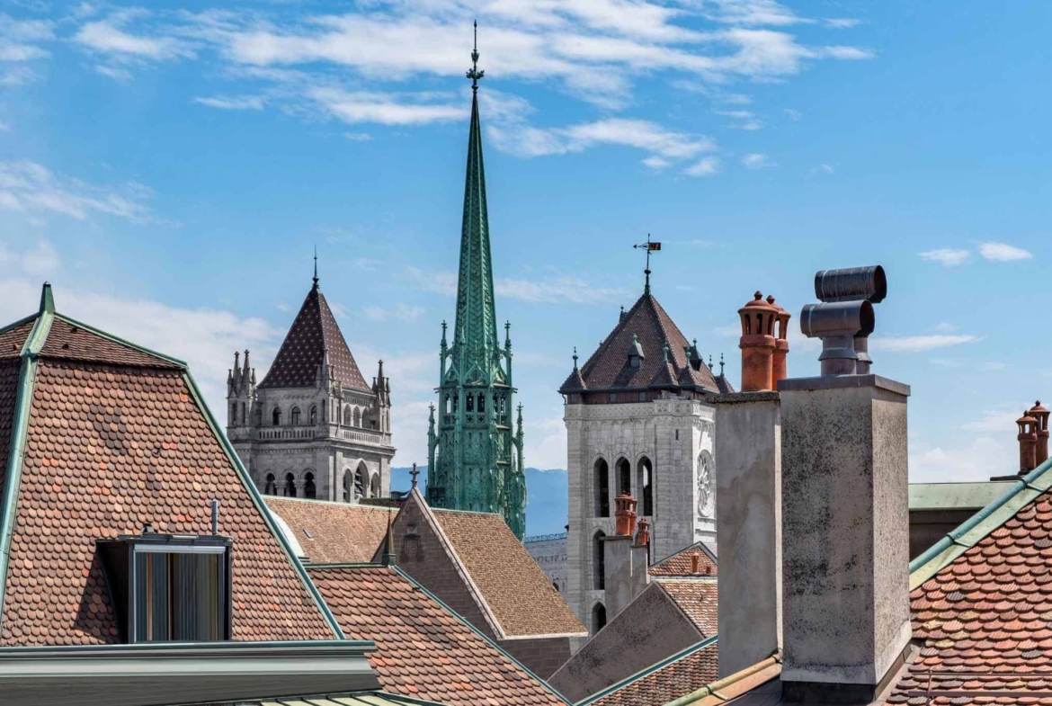 Situé au cœur de la Vieille-Ville, dans un magnifique immeuble classé du 18ème siècle surplombant la Treille et la Place-Neuve, ce superbe duplex avec studio d’une surface PPE de 218 m², offre de beaux volumes et des vues impressionnantes sur la Cathédrale Saint-Pierre et la ville.