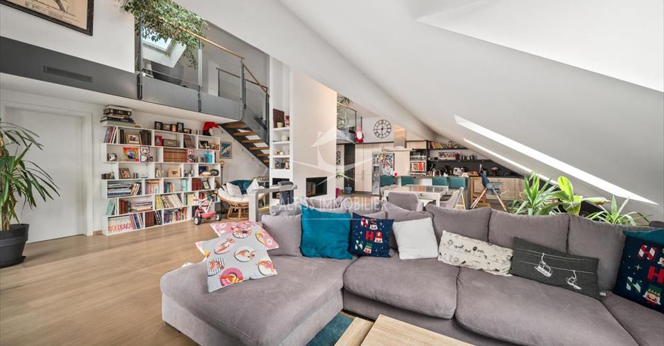 Élégance, volume et confort – Superbe appartement à Gingins. Situé au coeur d’un environnement résidentiel prisé et paisible, cet appartement de standing séduit par ses beaux volumes, sa lumière naturelle et la qualité de ses prestations. D’une surface généreuse, ce bien offre un espace de vie raffiné et fonctionnel, parfaitement adapté à une vie de famille exigeante ou à ceux qui recherchent le confort sans compromis. Disposition : Vaste séjour, avec grande cuisine ouverte Trois belles chambres à coucher, dont une suite parentale Deux jolies salles de bain Superbe mezzanine, idéale pour un espace bureau, une salle de jeux ou un salon bibliothèque WC visiteurs Buanderie privée dans l’appartement Les plus : Garage fermé privatif Place de parc dans parking souterrain sécurisé Garage et place de parc en sus du prix à CHF 65’000.- les deux Résidence récente et très bien entretenue, aux normes de qualité élevées Matériaux de qualité, atmosphère chaleureuse et contemporaine Cadre de vie privilégié : Nichée dans un cadre verdoyant et résidentiel, la commune de Gingins offre une qualité de vie exceptionnelle, à quelques minutes seulement de Nyon, du lac Léman et des principaux axes de communication. Proximité immédiate avec les écoles internationales, les commodités et les espaces naturels du Jura. Un bien rare sur le marché, alliant élégance, confort et discrétion.