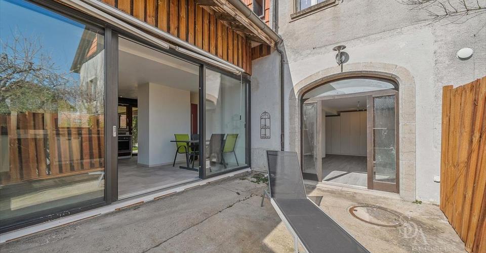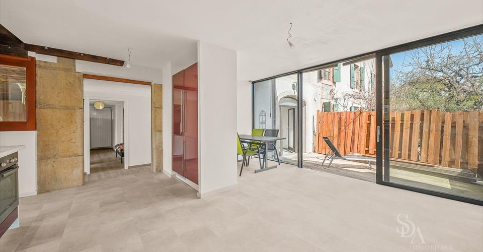 “SDA Immobilier vend en exclusivité, ce très bel appartement en terrasse. Situé au coeur de la résidence au “”Goût du bonheur”” à Goumoëns, en plein centre du village, cet appartement en rez de jardin prend place dans une bâtisse entièrement restructurée et repensée avec soin. Il propose un bel aménagement, avec encore un beau potentiel d’optimisation selon vos envies. Des propositions d’aménagement en 3D sont disponibles uniquement lors des visites, afin de vous aider à mieux vous projeter. Vous serez séduits tant par les volumes intérieurs que par les espaces extérieurs calmes et verdoyants. La grande cuisine, équipée d’une cheminée, s’ouvre sur une première terrasse. Le salon, au style original, offre également un accès direct à l’extérieur. La chambre parentale bénéficie d’un accès à un vaste espace couvert donnant sur le jardin. Deux autres chambres se partagent une salle d’eau ainsi qu’un petit local technique. Quatre terrasses: Une couverte de 60 m2 Une de 13 m2 Une de 12 m2 Une de 17 m2 Chaque moment de la journée offre un espace extérieur adapté à l’ensoleillement recherché. Une cave et deux places de parc extérieures complètent ce bien. Enfin, la possibilité d’utiliser certaines installations de la résidence (sous conditions) représente un véritable atout. Forfait englobant: Balnéothérapie Hammam Fauteuil de massage Salle de gym Carnotzet”