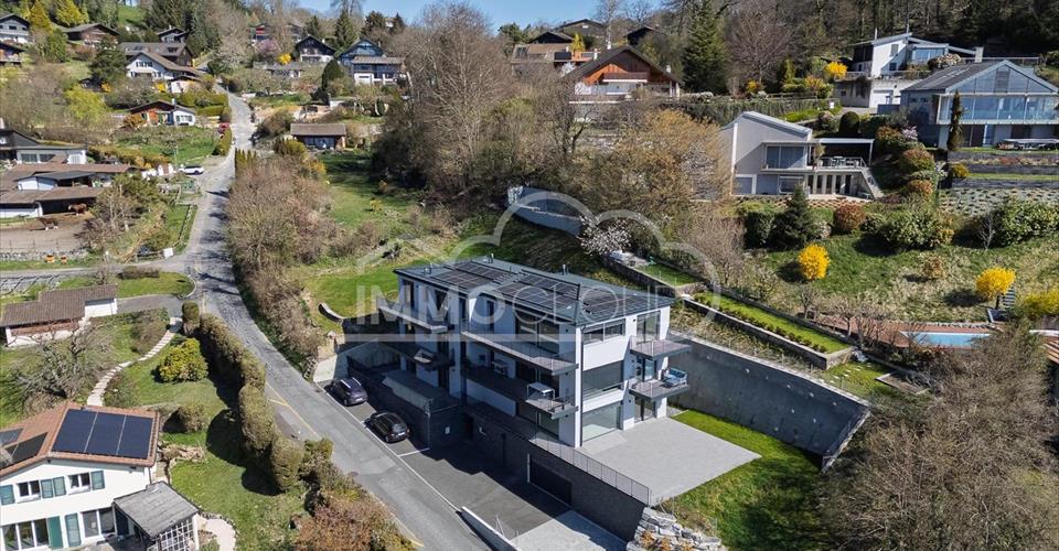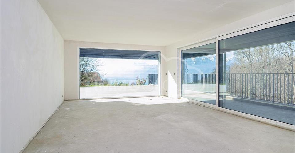 Appartement neuf de standing avec vue imprenable ? Jongny ! Dans un écrin de verdure dominant le bassin lémanique, cette PPE exclusive de seulement trois logements se distingue par son emplacement privilégié, son environnement paisible et ses prestations haut de gamme. Une adresse rare, pour celles et ceux qui recherchent la discrétion, le confort et la qualité de vie. Situé dans les hauteurs de la commune de Jongny, ce bien bénéficie d’un calme absolu et d’une vue dégagée sur le lac et les Alpes ? un panorama exceptionnel qui accompagnera votre quotidien pour de longues années. L’ensoleillement généreux tout au long de la journée renforce encore la sensation de bien-être. À seulement 5 minutes de l’autoroute, vous rejoignez aisément les centres urbains tout en profitant d’un cadre résidentiel exclusif et préservé. L’appartement proposé est actuellement livré à l’état brut, ce qui constitue une véritable opportunité de personnalisation. Vous avez ainsi le libre choix des finitions (comprises dans le prix) : sols, cuisines, salles de bains, peintures? Un luxe rare qui vous permet de créer un intérieur entièrement à votre image, sans compromis. Pensé pour offrir volumes généreux et confort moderne, ce logement de standing allie esthétisme et fonctionnalité. Les espaces de vie sont ouverts et lumineux, prolongés par des ouvertures vers l’extérieur qui valorisent la vue et la connexion avec la nature environnante. Deux place de parc souterraines sécurisées (en sus pour un montant total de CHF 90’000.-) Contactez-moi rapidement pour saisir votre chance ! Bastien Anex Co-fondateur Brevet Fédéral de courtier en immeubles Immocloudsarl.ch