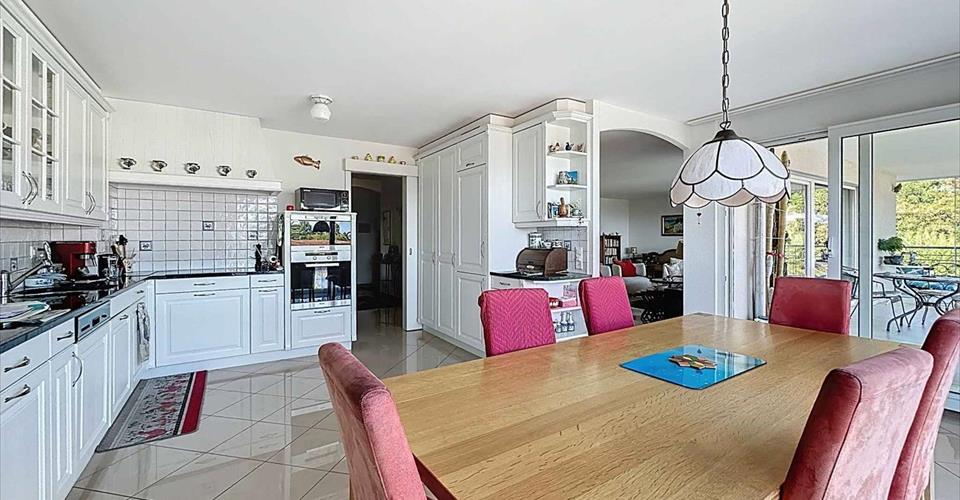 Situé dans un quartier résidentiel et prisé de la commune de Mont-sur-Rolle, à quelques pas des rives du Lac et à proximité des commodités de la ville de Rolle, cet appartement bénéficie d’un emplacement exceptionnel et rare. La vue panoramique imprenable sur le Léman et la chaîne des Alpes ne laissera personne insensible. Au premier étage d’un immeuble de seulement 8 lots construit en 2006, ce bien offre des prestations de grande qualité. D’une superficie d’environ 200 m², l’agencement de cet appartement est distribué comme suit : – un hall d’entrée spacieux avec rangements et accès privatif à l’ascenseur, – une grande cuisine avec coin repas, – un séjour vaste et lumineux, agrémenté d’une cheminée et de baies vitrées ouvrant sur le balcon, – un balcon couvert d’environ 28 m² offrant un panorama exceptionnel, – une chambre parentale avec de nombreux espaces de rangements, un balcon privatif et une salle d’eau attenante (bain à bulle et douche/hamman), – trois chambres à coucher, – une salle de douche, – une buanderie privative. Le bien inclut également une cave, un local supplémentaire (atelier ou carnotzet), une cave à vin climatisée et un garage/box pour deux voitures. N’attendez plus pour découvrir ce bien d’exception !