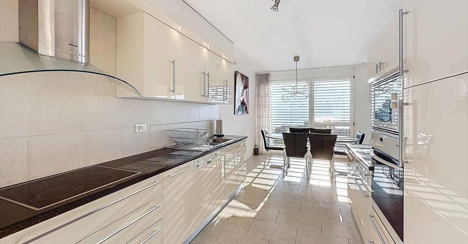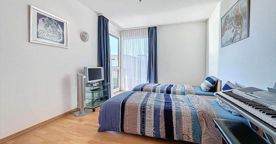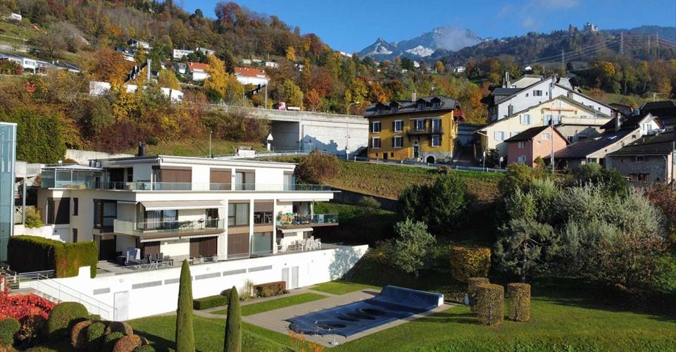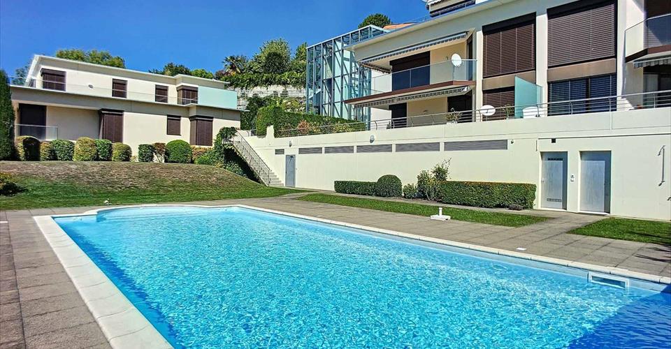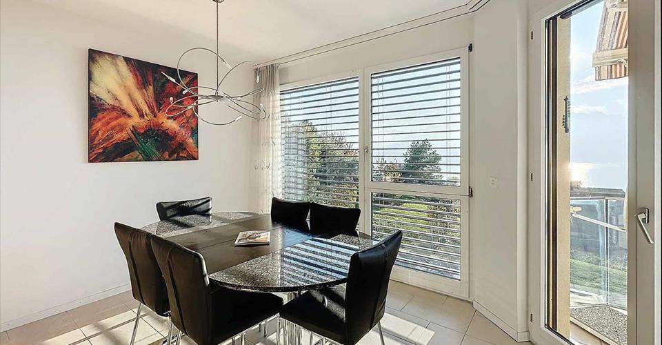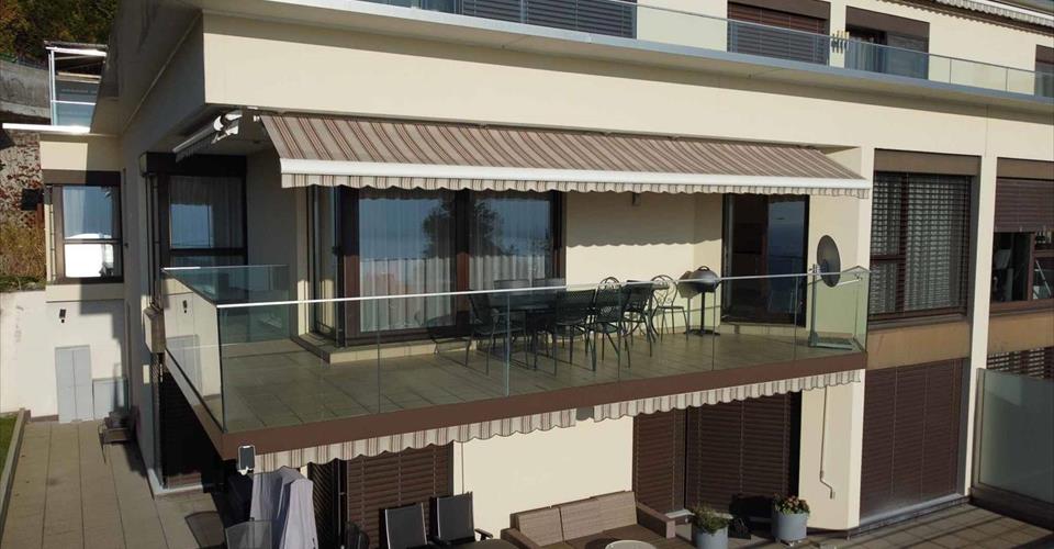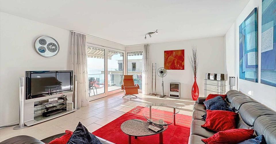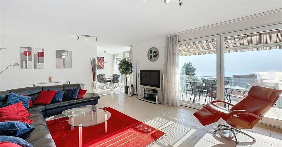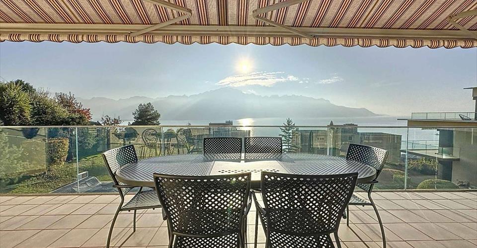 Cet appartement de 5 ½ pièces d’environ 158 m² habitables est situé au 1er étage d’une petite PPE avec piscine extérieure. Il dispose d’un grand balcon de 22 m², offrant une surface pondérée d’environ 169 m². Orienté Sud-Ouest, il bénéficie d’une luminosité optimale et d’une vue spectaculaire sur le lac Léman et les montagnes. Deux places de parc dans le garage souterrain, en sus, ainsi qu’une cave, complètent ce bien. Distribution intérieure : – Un spacieux hall d’entrée avec armoires – Un vaste séjour avec accès au balcon, offrant une vue panoramique sur le lac – Une cuisine ouverte avec coin repas – Trois chambres à coucher – Une suite parentale avec dressing et salle de bains/WC – Un grand dégagement avec armoires murales – Une salle de douche/WC avec colonne de lavage – Un WC visiteurs Prix de vente de l’appartement : CHF 1’670’000.- Prix de vente des places de parc : CHF 80’000.- Prix de vente total : CHF 1’750’000.- La vente en résidence secondaire et aux étrangers est autorisée.