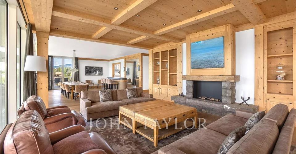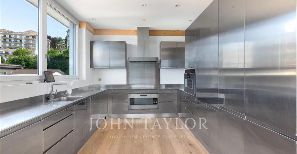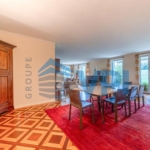 -Quatre chambres spacieuses, chacune dotée d’une salle de bains privative et de placards intégrés, offrant un espace de rangement optimisé. -Un salon TV chaleureux, astucieusement séparé du séjour par une élégante paroi en verre sécurisé, avec une porte double battante pour une touche de confort et de style. -Un séjour vaste et baigné de lumière, mettant en valeur une cheminée accueillante et un mur aménagé, sublimé par de grandes baies vitrées qui s’ouvrent sur une généreuse terrasse orientée plein Sud. -Une salle à manger conviviale, ouverte sur le séjour, équipée d’un bar et d’une paroi intégrée faisant office de vaisselier, idéale pour des réceptions élégantes. -Une grande cuisine en acier inoxydable, entièrement équipée d’appareils électroménagers haut de gamme, avec une porte coulissante à deux battants permettant un accès fluide à la salle à manger. -3 places de parc intérieures comprises dans le prix de vente