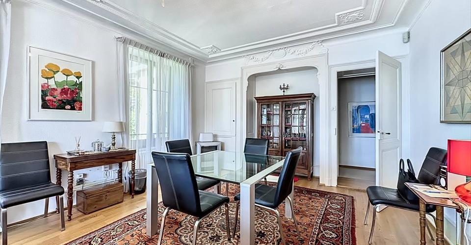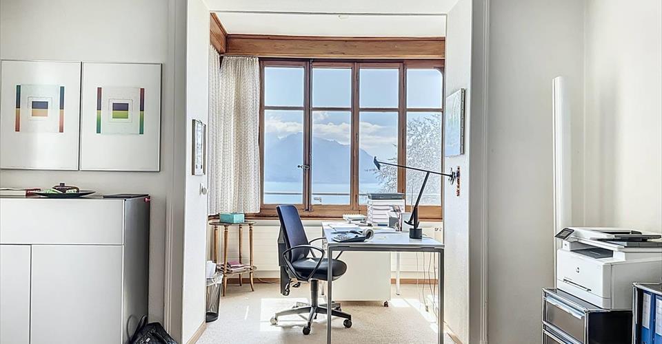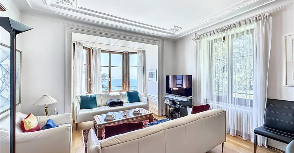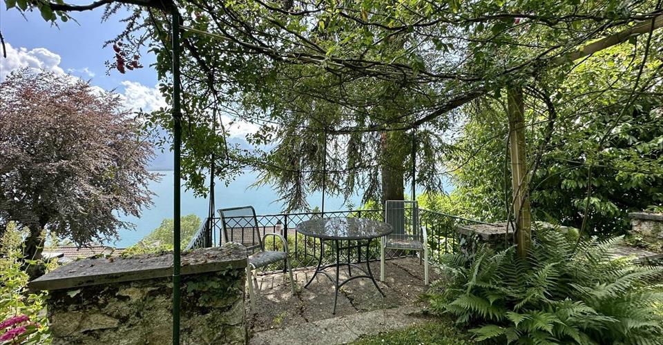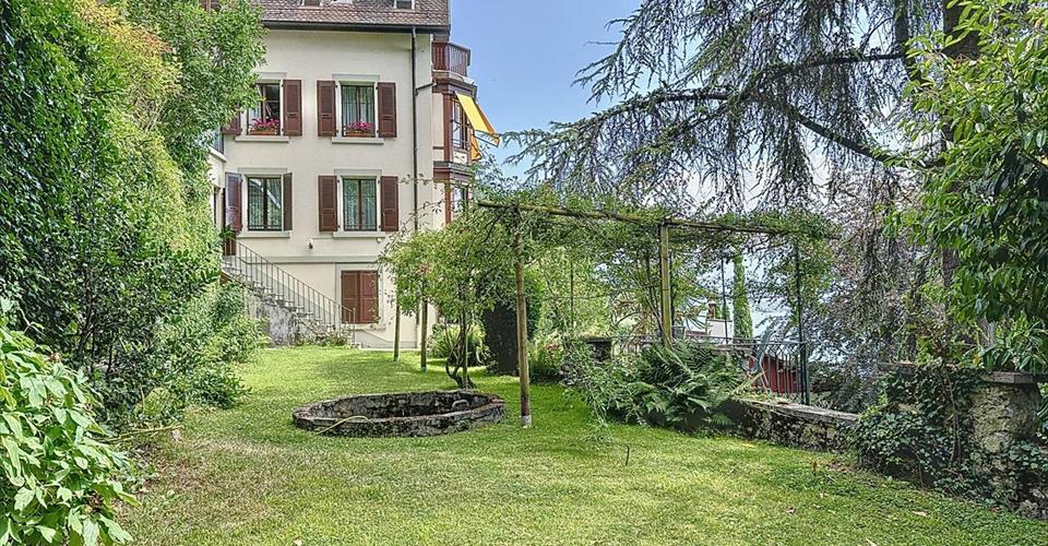 Ce bel appartement de 5,5 pièces d’environ 202 m² habitables se situe à Territet, au rez inférieur et supérieur d’un immeuble résidentiel de charme, construit dans les années 1800. Distribué sur deux niveaux, il totalise une surface pondérée de 245 m² et bénéficie d’énormément de charme, notamment grâce à ses hauts plafonds ornés de moulures et ses parquets d’origine. Il jouit d’un splendide jardin privatif ainsi que d’une magnifique terrasse totalisant environ 400 m², dans un cadre enchanteur alliant verdure ainsi qu’une vue panoramique sur le lac Léman et les montagnes. Les pièces à vivre sont très lumineuses et offre une vue à couper le souffle sur le bassin lémanique. REZ SUPÉRIEUR – Un grand hall de distribution avec nombreuses armoires murales ;- Un séjour / coin à manger ;- Une cuisine habitable avec escalier extérieur donnant accès à la terrasse et au jardin de l’étage inférieur ;- Deux chambres à coucher ;- Une salle de bains/WC ;- Un WC visiteurs ; – Un balcon ;- Accès au rez inférieur par un escalier. REZ INFÉRIEUR – Une petite pièce qui pourrait être aménagée en cuisine ; – Une chambre à coucher ;- Une salle de bains/WC ; – Nombreux espaces aménageables ;- Une cave ; – Une terrasse et un jardin.