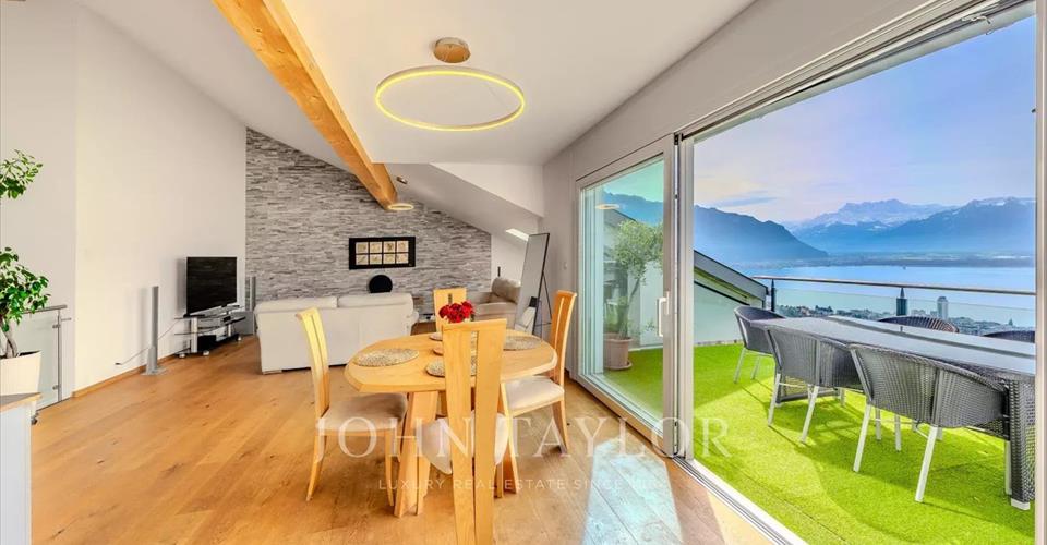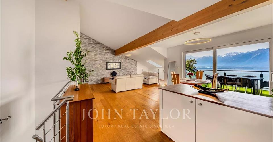 -Magnifique appartement en duplex de 200 m² situé au dernier étage d’une copropriété moderne (PPE). -Idéalement situé à seulement quelques minutes de Montreux (Chernex), à proximité des transports publics et des accès autoroutiers. -Superbe vue sur le lac, les montagnes et les paysages environnants. -Spacieux et lumineux séjour avec cuisine ouverte, offrant un accès direct au balcon. -Quatre chambres à coucher et deux salles de bains. -Architecture contemporaine avec des finitions soignées et des matériaux de haute qualité, aucun travaux à prévoir. -Ce bien comprend également une cave et deux places de parking intérieures (CHF 80’000.-). -Acquisition possible par des étrangers non-résidents en tant que résidence secondaire.