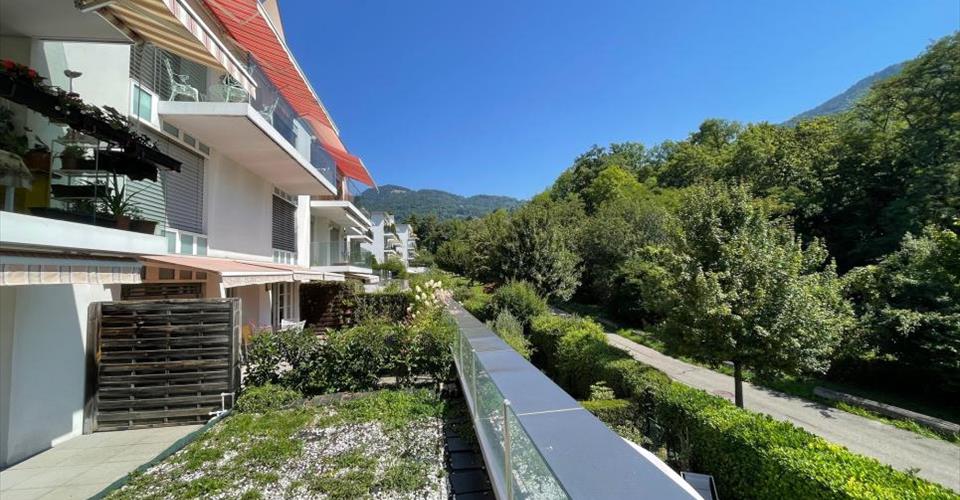 Très joli appartement de 5,5 pièces dans un quartier très calme de Clarens / Montreux avec une belle vue dégagée sur les montagnes et la nature. Situé au rez supérieur avec une terrasse / jardin ce bien en parfait état suite aux travaux de réfection récents se compose de la manière suivante: – Un hall d’entrée avec une armoire intégrée qui comporte le tableau électrique central ainsi que le compteur et le contrôle du chauffage par le sol. – Un espace séjour – salle à manger spacieux et lumineux grâce aux grandes baies vitrée qui accèdent sur la terrasse – jardin. – Une terrasse d’environ 14 m2 et un jardin d’environ 22 m2 pour profiter de la jolie vue depuis l’extérieur. – Une belle cuisine entièrement agencée et partiellement ouverte sur l’espace séjour – salle à manger. – Une salle de douche avec un wc et un lavabo. – Une salle de bains avec un wc et un lavabo. – 1 chambre principale d’environ 14 m2 avec une grande armoire intégrée et la salle de bains attenante. – 3 autres chambres de 10 à 12 m2 avec les fenêtres qui donnent sur la bande de gazon située sur l’arrière l’immeuble. Les 2 garages box avec portes motorisées, dont un communique directement avec la cave, sont vendus en supplément au prix de CHF 80’000.-. Une cave comprise dans le prix de vente vient compléter cet appartement qui peut être acheté comme résidence principale et aussi comme résidence secondaire ou comme appartement de vacances par des étrangers non-résidents. Les surfaces indiquées dans ce dossier le sont à titre indicatif. L’immeuble qui compose cette PPE 20 appartements dispose de 2 ascenseurs pour un accès facile à tous les niveaux. Les arrêts de bus VMCV sont à environ 300 mètres; les écoles primaires du collèges de Rambert ou de Clarens un peu plus loin en une dizaine de minutes à pied, tout comme la gare CFF et la Poste de Clarens et le petit centre commercial proche du lac. L’entrée d’autoroute de Montreux est atteinte en moins de 5 minutes, permettant ainsi de partir rapidement sur les grands axes routiers en direction de Lausanne, Fribourg, Berne, le Valais ainsi que Genève et son aéroport international à moins d’une heure.