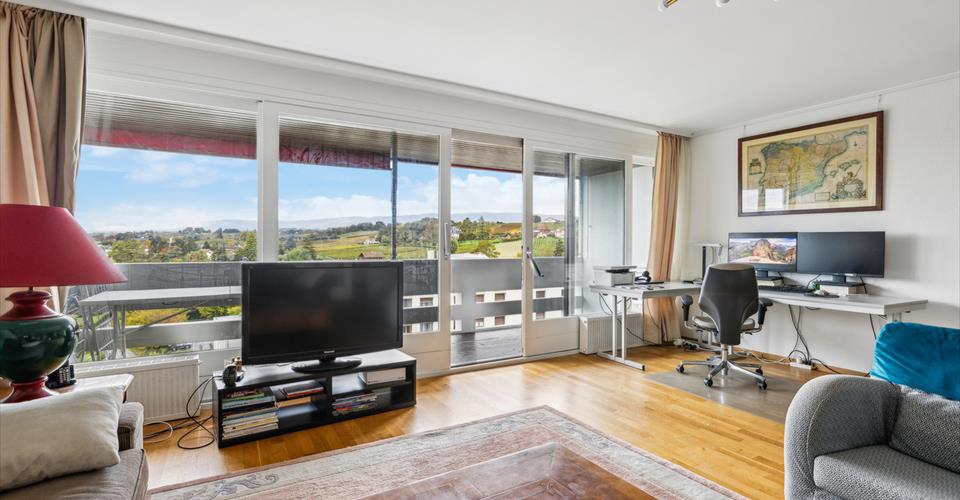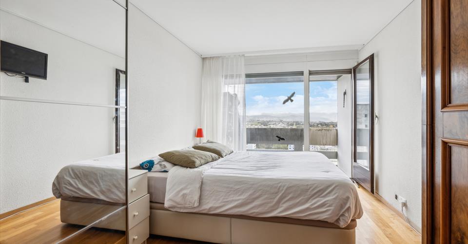 Situé au 10ème étage d’une luxueuse copropriété, cet appartement de 135 m² pondéré jouit d’une magnifique vue sur le lac Léman et les Alpes. – 121 m² habitable – Magnifique vue sur le lac et les Alpes – Rénové en 2011 avec des matériaux de qualité – Piscine intérieure et extérieure – Luxueuse copropriété Prix de vente de l’appartement: 1’700’000 frs Prix de la place de parc: 40’000 frs Prix total: 1’740’000 frs