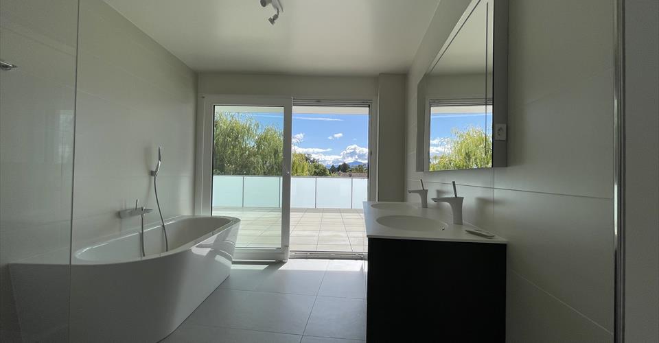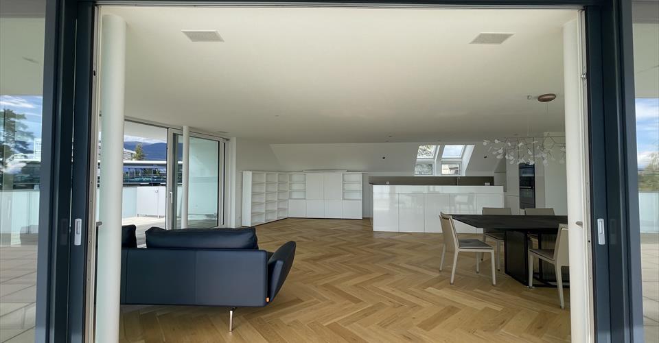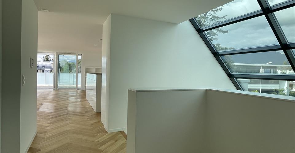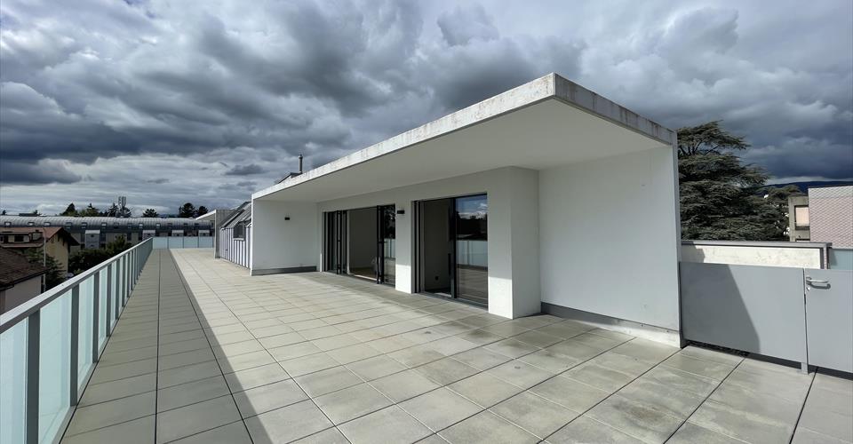 Découvrez ce superbe appartement de 5.5 pièces de 225 m² situé au 3ème étage d’un immeuble moderne de 2015 sur la Route de St Cergue à Nyon. Entièrement rénové en 2025, ce bien d’exception offre un cadre de vie privilégié dans un environnement calme et ensoleillé. Caractéristiques principales : Surface généreuse : 225 m² habitables sur une surface totale de 400 m² Configuration optimale : 5.5 pièces spacieuses avec 3 salles de bains. Rénovation récente : Entièrement rénové en 2025 avec finitions haut de gamme. Balcon privé : Espace extérieur pour profiter de la luminosité exceptionnelle. Garage et parking : 2 places de stationnement sécurisées incluses. Ascenseur : Accès direct dans l’appartement Accessibilité : Adapté aux personnes à mobilité réduite Environnement exceptionnel : Cet appartement en duplex bénéficie d’un emplacement privilégié dans un quartier résidentiel. Situé à quelques minutes (10 min à pieds) du centre-ville de Nyon, ce magnifique appartement en duplex est idéal pour des familles recherchant la proximité immédiate de toutes les commodités. Spacieux, lumineux et hyper fonctionnel, ce duplex de plus de 225m2 offre des espaces de vie pour chacun. Le r3ème étage offre une magnifique pièce de vie très lumineuse avec une belle cuisine toute équipée, et un très vaste salon séjour donnant accès à la terrasse d’environ 200m2. Le 2ème étage offre deux chambres et une salle de bain + WC. Commodités à proximité : La vie quotidienne est facilitée par la proximité immédiate des services essentiels. Un arrêt de bus se trouve à seulement 1 minute à pied, tandis qu’un supermarché et une pharmacie sont accessibles en 4 minutes de marche. Les familles apprécieront la présence d’une école à 6 minutes à pied, rendant ce bien particulièrement adapté aux enfants. Disponible immédiatement, cet appartement représente une opportunité rare d’acquérir un bien d’exception dans l’une des communes les plus prisées de la région lémanique. Parfait pour une famille recherchant espace, confort moderne et qualité de vie dans un cadre paisible.