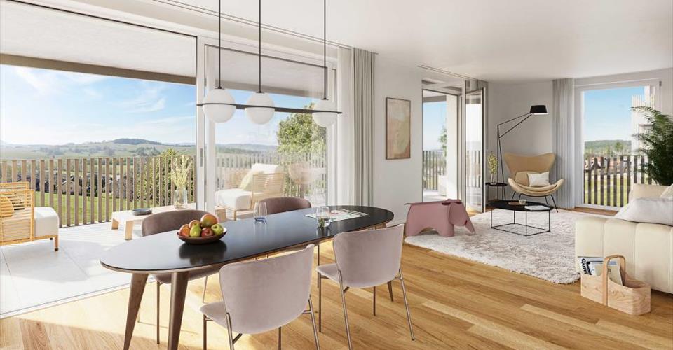 PROXIMMO, VOTRE AGENCE IMMOBILIÈRE, VOUS PRÉSENTE: “LA CLÉ DES CHAMPS”, PROJET EMBLÉMATIQUE AUX PRESTATIONS UNIQUES ! Découvrez “La Clé des Champs”, un nouveau quartier harmonieux, vivant, écologique et pratique qui redéfinit l’art de vivre. Parfaitement situé à 15-20 minutes des centres de Lausanne et Vevey, ce superbe projet immobilier propose 53 appartements à la vente (Phase 1). Qualitatifs et fonctionnels, de typologies variées, à deux pas de la gare CFF et jouissant d’un cadre exceptionnel pour la région, ces biens sauront répondre aux attentes de tous les profils d’acheteurs. Ce nouveau quartier situé à quelques minutes des centres urbains se marie parfaitement avec son environnement direct bucolique et verdoyant, synonyme d’équilibre entre vie active et vie de famille. Il vous propose de nombreux services tels que garderie, petite épicerie, Publibike, EMS, Mobility, parcs à vélos, local multifonctionnel, atelier de réparation de vélos, espaces pour télétravail, jardins communautaires, salle de sport, (etc.), offrant ainsi une qualité de vie hors du commun pour les futurs habitants. Doublement labellisé (Minergie / SNBS Quartier), ce projet répond à des critères de qualité, de sécurité et de confort des plus exigeants. Il a été conçu en prévoyant une approche globale sur le fonctionnement du quotidien des habitants, tout en considérant les différents enjeux de la durabilité. Les appartements ont été parfaitement configurés et intelligemment réfléchis jusque dans les moindres détails pour optimiser les espaces de vie mis en valeur par une luminosité naturelle généreuse, notamment grâce aux belles ouvertures vers l’extérieur. Les distributions intérieures sont fonctionnelles et optimales, offrant de vraies pièces agréables à vivre en toute saison. Ce projet donne également la possibilité aux futurs propriétaires des lieux de personnaliser leur nouveau logement et d’en choisir les finitions. La région offre quant à elle de nombreux avantages. Le cadre naturel des environs, entre plaines et montagnes, conjugué aux commodités urbaines facilement accessibles et à proximité directe de la gare CFF, permet de répondre aux besoins de tous, et de proposer une offre complète. Les écoles sont à 3 min, et les transports scolaires organisés. Oron est également à 3 min, où se trouvent plusieurs centres commerciaux, restaurants, lieux de loisirs, médecins, banques, etc. Les villes de Lausanne et Vevey sont accessibles en moins de 20 min, que ce soit en voiture ou en train. Cette promotion offre donc une variété de solutions, tant pour les familles que pour les seniors, et permettra aux habitants d’y voir leur foyer et leur quotidien évoluer au fil des ans dans un environnement agréable. En outre, elle constitue une très bonne opportunité d’investissement en termes d’achat, notamment grâce à des prix accessibles et à une conception assurant une pérennité de la valeur sur le long terme. … Et si vous faisiez partie de cette belle aventure ? Lots en vente: 2.5 pièces à partir de Frs. 435’000.– 3.5 pièces à partir de Frs. 590’000.– 4.5 pièces à partir de Frs. 740’000.– 5.5 pièces à partir de Frs. 890’000.– Lancement du chantier cet automne (Phase 1). Notre avis : – Un projet unique, à forte valeur ajoutée – Bâtiments labellisés, écologiques et efficients pour un minimum de frais – Mobilité douce et sécurité, tous les véhicules en souterrain – Chauffage par PAC géothermie avec géocooling en été – 200 arbres plantés, vergers communautaires, aires de repos et de jeux – Quartier disposant de commodités pour les habitants (garderie, fitness, coworking, espaces séniors, café, épicerie, etc.) – Gare CFF à pieds permettant de rejoindre Lausanne en 15 min. – Prix de vente attractifs, prise de valeur à court terme, facile à louer, investissement sécurisé – Garanties de construction, dur