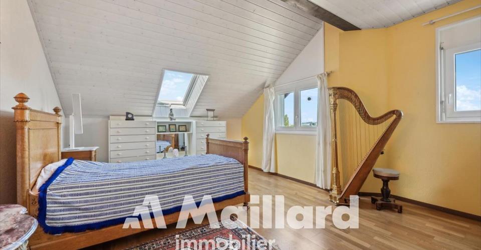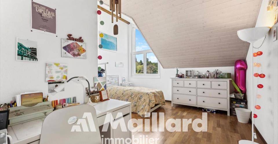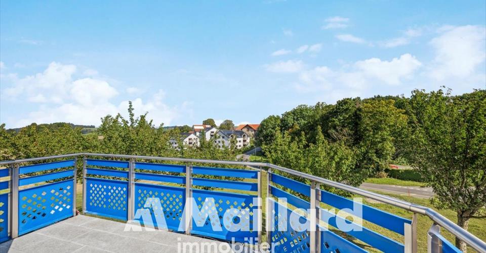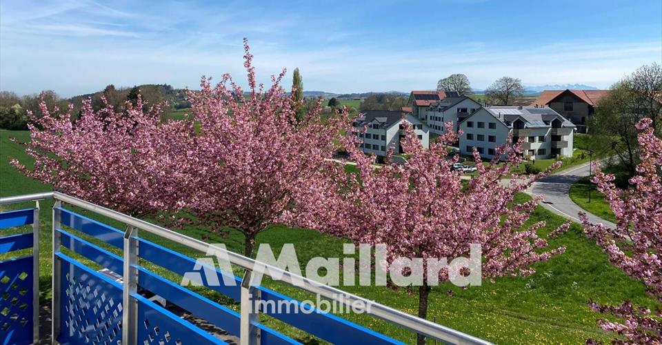 Appartement en duplex avec un grand balcon terrasse de 21 m2 orienté plein sud lui offrant une vue sur la campagne environnante. Situation très calme dans une PPE de 4 lots qui a été construite en 2007. Cet appartement de 5.5 pièces en duplex d’une surface habitable de 138 m2 bénéficie de jolis volumes et d’une très belle luminosité grâce à ses grandes ouvertures tant dans les chambres que dans le séjour. Le village de Ropraz est un village paisible qui se situe en retrait de la route de Berne, entre Epalinges et Moudon. Toutes les commodités et infrastructures tels que commerces, boulangeries, etc. se situent à Mézières, à 5 minutes. Production de chaleur par PAC géothermique. Panneaux photovoltaïques (2023) et bornes de recharge électrique (2023). 2 box fermés et 1 place de parc extérieure complètent ce bien (CHF 70’000.- en sus). Contact : Thomas Bise