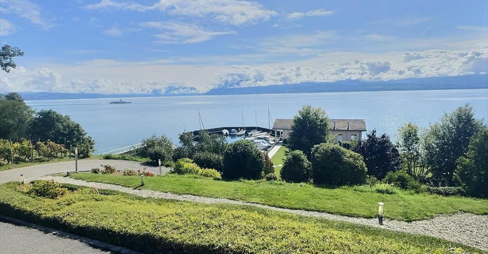 Exceptionnel appartement en viager occupé sans rente avec vue Lac et port privé Valeur du bien: 3’800’000.- Vous ne payez que: Bouquet: 2’800’000.- H: 93 ans et F: 88 ans Un bijou lacustre au confort unique: Situé dans un cadre privilégié, littéralement les pieds dans l’eau, cet appartement traversant de standing offre une atmosphère raffinée et un art de vivre rare. Dès l’entrée, un hall élégant avec WC visiteurs vous conduit vers un vaste séjour baigné de lumière, prolongé par un coin lecture chaleureux. La cuisine semi-ouverte, parfaitement équipée, s’intègre harmonieusement à cet espace convivial. La pièce de vie s’ouvre sur une terrasse d’exception de 90 m², véritable écrin de sérénité, agrémentée d’une cascade décorative et d’une tonnelle recouverte de lierre. Un grand jardin privatif complète ce cadre verdoyant, en plus des espaces communs soigneusement paysagés. L’espace nuit propose une suite parentale raffinée avec dressing et salle de bains attenante équipée d’une baignoire, ainsi que trois chambres spacieuses. Deux salles de bains contemporaines avec douche et WC assurent confort et praticité. Prestations exclusives : – Cave à vin de 43 m², deux grandes caves supplémentaires et buanderie privative. – Deux places de parking intérieures, chacune avec local de rangement privatif (environ 5 m²). – Accès direct au port privé et au lac, avec possibilité d’amarrage pour embarcations visiteurs. La résidence, sécurisée et parfaitement entretenue, se niche au coeur d’un parc paysager et offre à ses copropriétaires des infrastructures nautiques exclusives ainsi qu’un club house proposant des vestiaires, des douches, casiers, wc. Concierge et jardinier assurent un service irréprochable, tandis que de nombreuses places de parking visiteurs facilitent l’accueil. Surplombant le lac avec une vue imprenable, ce bien d’exception conjugue intimité, élégance et cadre de vie idyllique.