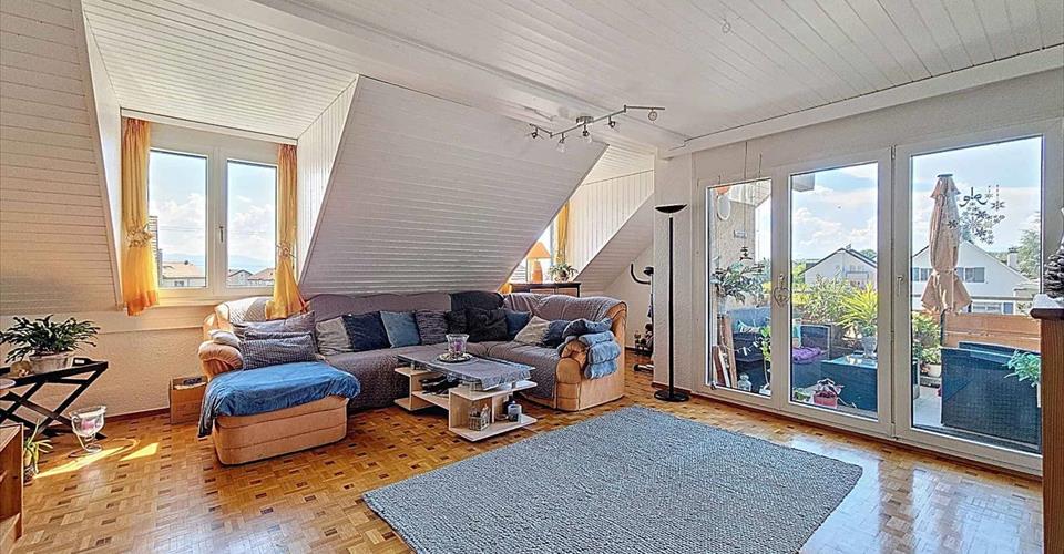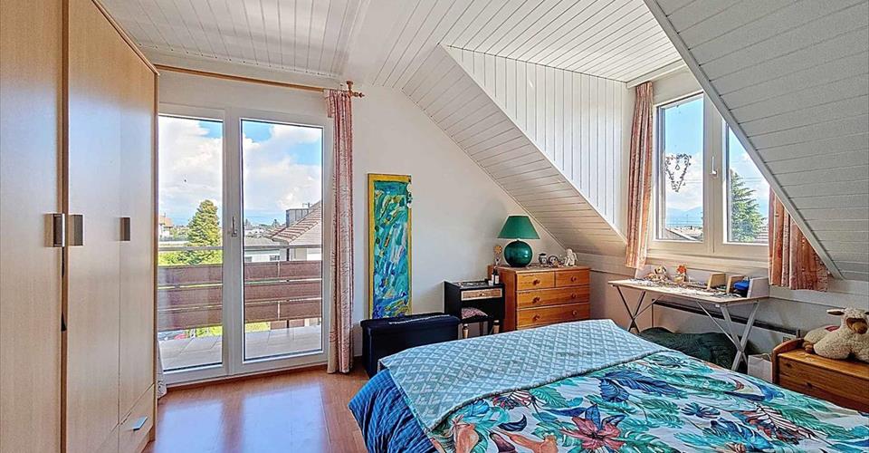 BARNES MORGES vous propose un appartement à St-Prex, Situé en attique d’une petite PPE à taille humaine de 3 lots, cet appartement traversant se compose de 5.5 pièces réparties sur 122 m² habitables (132 m² pondérés). En outre, il profite d’un espace disponible et privatif d’environ 60 m² sous les combles (galetas aménagé) directement accessible depuis l’appartement (trappe et échelle). Côté extérieur il dispose d’un balcon orienté Ouest d’environ 10 m² et d’un second balcon orienté Est d’environ 10 m² également. L’appartement mérite quelques travaux pour moderniser la cuisine et certains appareillages des salles d’eau. Cependant, il est très agréable à vivre, car spacieux et lumineux. Son salon de 29 m² est équipé d’une cheminée et la baie vitrée donnant sur le balcon rend cette pièce très confortable. Avec 4 chambres à coucher, il peut s’adresser à une famille ou bien à des personnes travaillant depuis leur logement en télétravail (bureau). Les deux salles d’eau permettent une salle de douche/WC avec emplacement pour la machine à laver et une salle de bains/WC. En annexe, il y a une cave privative au sous-sol, ainsi qu’une seconde cave privative accessible depuis l’extérieur (réduit ou local pour vélo/poussette). Par ailleurs, il y a aussi un espace loisir disponible en commun à toute la PPE, aménagé d’une table de billard et équipé avec une kitchenette. Côté parking, un garage box à CHF 30’000.- et de 2 places de parking extérieures à CHF 15’000.- l’unité complètent le prix de cet appartement.