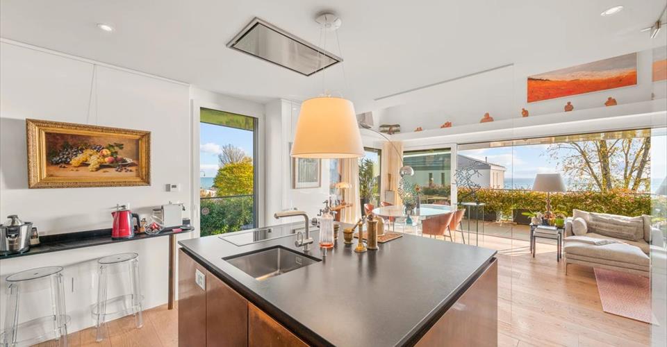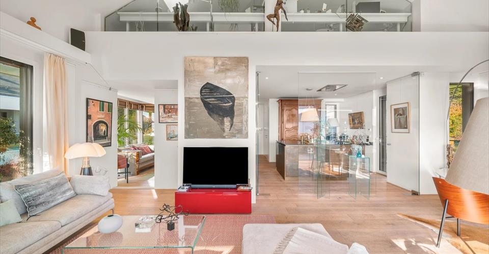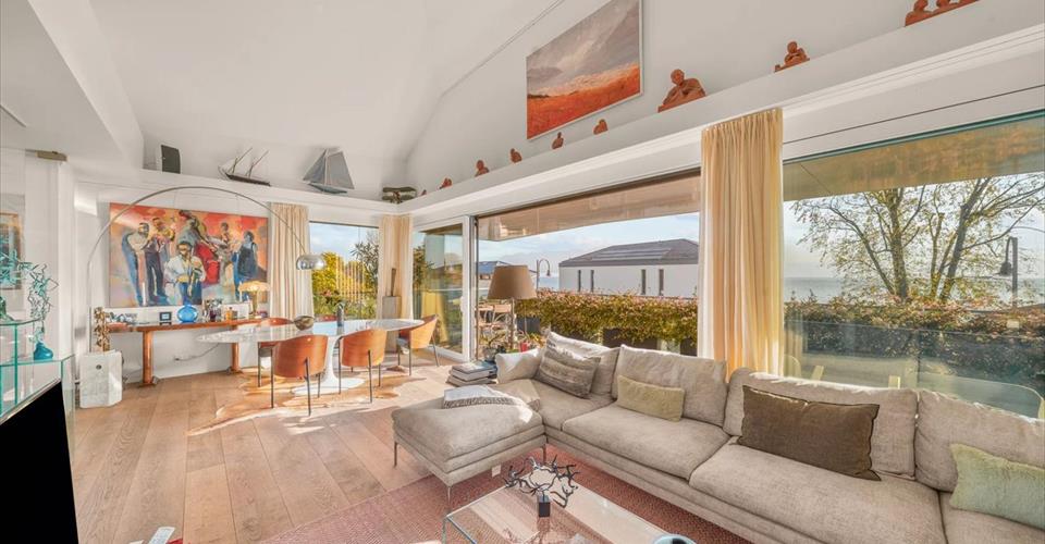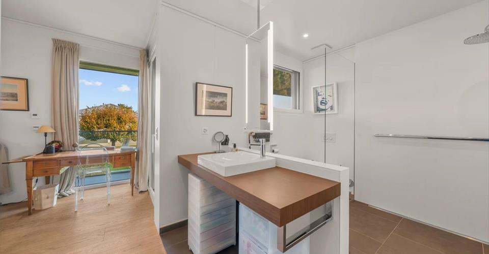 Cette luxueuse résidence, érigée en 2015, se niche au coeur d’un des quartiers les plus prestigieux de Saint-Sulpice, prisé pour son calme et son art de vivre raffiné au bord du lac, à 10 minutes à pieds des commerces. Cet attique d’exception de 5,5 pièces offre une surface totale de 214.5 m² et se distingue par une vaste terrasse de plus de 70 m² orientée plein sud, qui dévoile une superbe vue sur le lac et les Alpes. Dotée de hauts plafonds et de larges baies vitrées, la résidence labellisée Minergie bénéficie d’une luminosité optimale tout au long de la journée. L’appartement présente des finitions haut de gamme, incluant une cuisine Poggenpohl entièrement équipée, un spacieux séjour avec accès direct à la terrasse et à une élégante bibliothèque. Il comprend deux chambres à coucher avec dressings et salles de bains et offre un espace aménagé sous les combles, intégrant une troisième chambre, un dressing-room, une salle de douche ainsi qu’un bureau. Un ascenseur privatif dessert l’appartement, et des commodités telles qu’une buanderie privée, une cave de 25 m² et deux places de parking intérieures viennent parfaire cet exceptionnel bien immobilier.