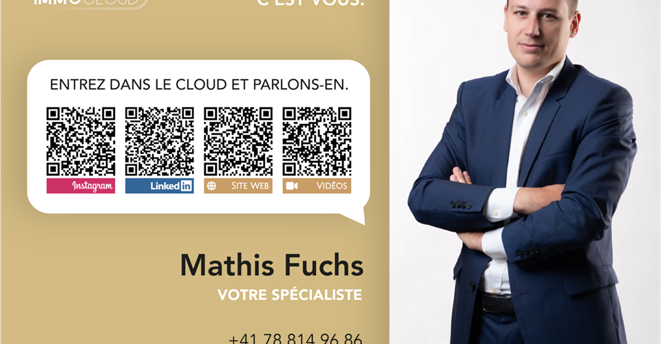 Nouvelle promotion sise au chemin de Foulaz 2 ! Appartement neuf et terminé, profitez d’acquérir le bien qui vous correspond ! Vallorbe profite d’un parfait équilibre entre sa nature préservée et de son bassin économique dynamique et prospère. La région propose de nombreux emplois nécessitant de hautes qualifications comme dans le secteur de l’horlogerie. La proximité de la nature vous laissera le loisir de vous balader en forêt ou de vous prélasser sur votre terrasse ou balcon lors des longues soirées estivales. Générosité et durabilité sont les maîtres mots de la promotion Foulaz 2. Généreux par ses ouvertures illuminant les appartements avec la vue sur la nature environnante. Durabilité car le projet se veut sans compromis en termes de critères environnementaux. Les espaces de jours invitent à la convivialité et à la détente avec des ouvertures étendues sur les surfaces externes. Les chambres sont pensées pour offrir un maximum d’espace facilitant l’aménagement de votre cocon. Les appartements sont traversant dans l’orientation Sud-Nord donnant un sentiment de vivre dans une villa. La terrasse au Sud et le balcon au Nord amènent des grands espaces supplémentaires. Des places de parking extérieurs et intérieures sont disponibles en sus du prix de vente à partir de CHF 10’000.-. Pour toutes demandes, questions et pour fixer une visite sur site, le soussigné se tient à votre entière disposition : Monsieur Mathis Fuchs Co-fondateur Diplôme fédéral d’administrateur de biens immobiliers Immocloudsarl.ch