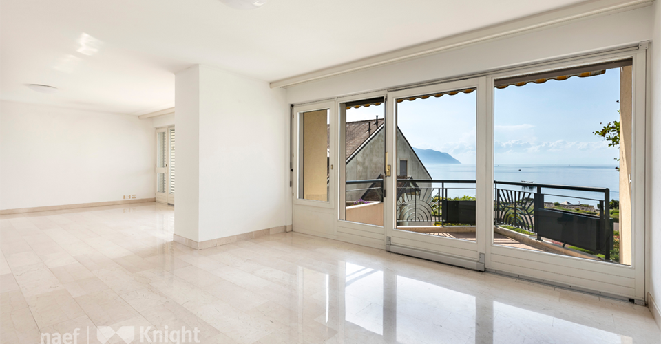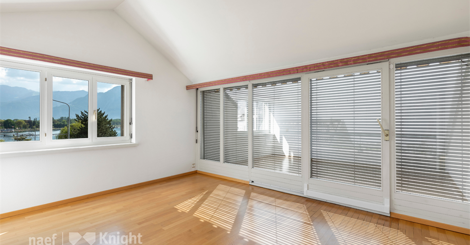 Ce magnifique appartement de 5.5 pièces en duplex d’environ 172 m2 habitables bénéficie d’une situation unique au bord du lac et avec une vue panoramique sur le lac et les montagnes. Ce superbe duplex est situé au dernier étage de la résidence. Cette position en attique renforce le côté exclusif de ce bien. Trois balcons vous permettront de profiter pleinement de cette situation exceptionnelle. Le bien est en bon état et possède de grands espaces. De plus, il est orienté Sud-Ouest ce qui lui procure une belle luminosité toute la journée. Deux places de parc intérieures à CHF 80’000.-, en sus du prix de vente, complètent ce logement unique. SITUATION Cette belle résidence se situe à l’entrée de Villeneuve et directement sur les quais, au bord du Lac Léman. Un arrêt de bus se trouve à seulement 100 mètres et la gare CFF à environ 300 mètres. VENTE AUTORISEE AUX ETRANGERS NON RESIDENTS
