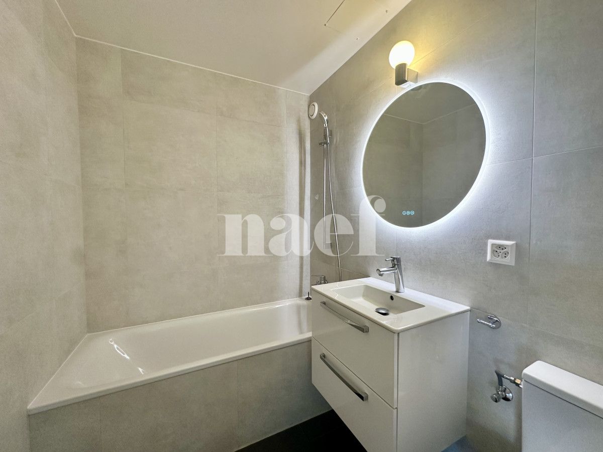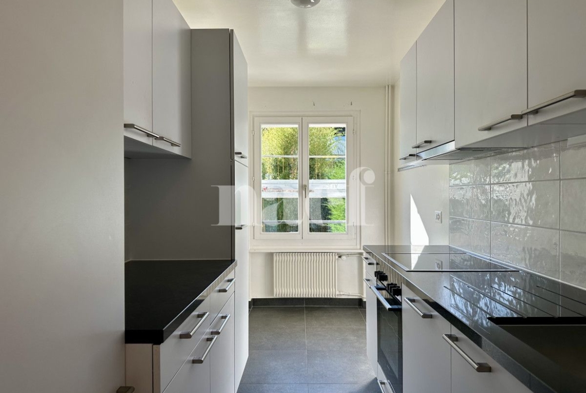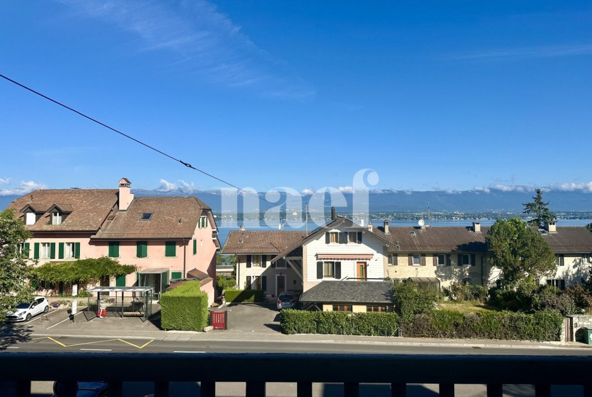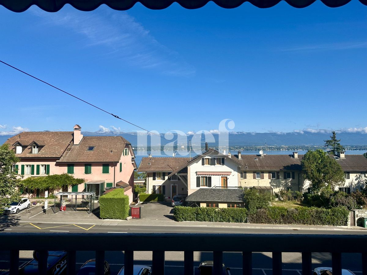 Dans un environnement paisible à proximité du lac Léman, ce logement d’environ 88 m², situé dans un immeuble sans ascenseur, propose des volumes bien répartis. L’espace de vie, composé d’un salon et d’une salle à manger lumineux, s’ouvre sur un balcon orienté nord-ouest offrant une vue dégagée sur le lac. L’agencement comprend également deux chambres, un hall d’entrée spacieux, une salle de bains/WC avec une vasque et son sous-meuble, un WC séparé, ainsi qu’un réduit avec raccordement prévu pour l’installation d’une colonne lave-linge.