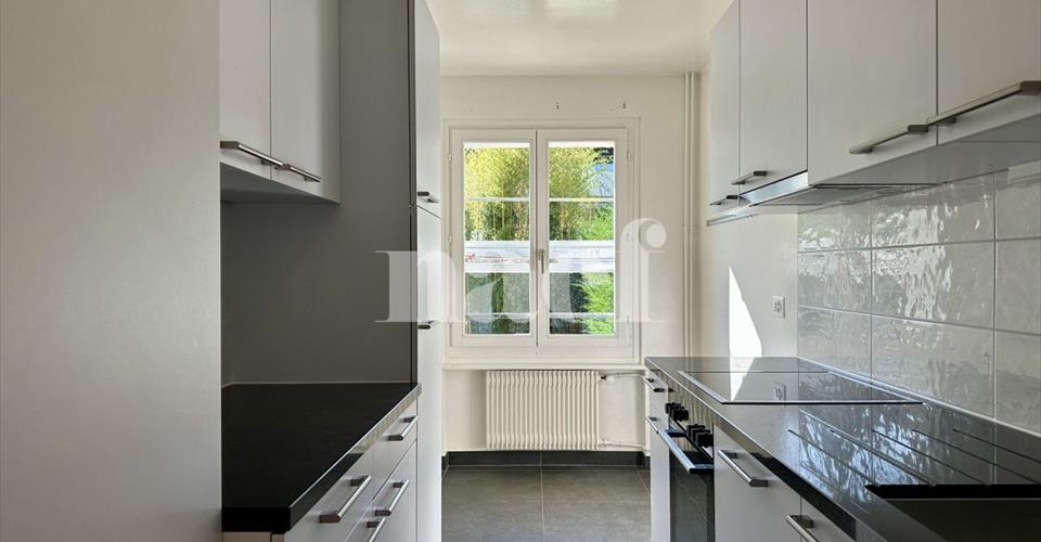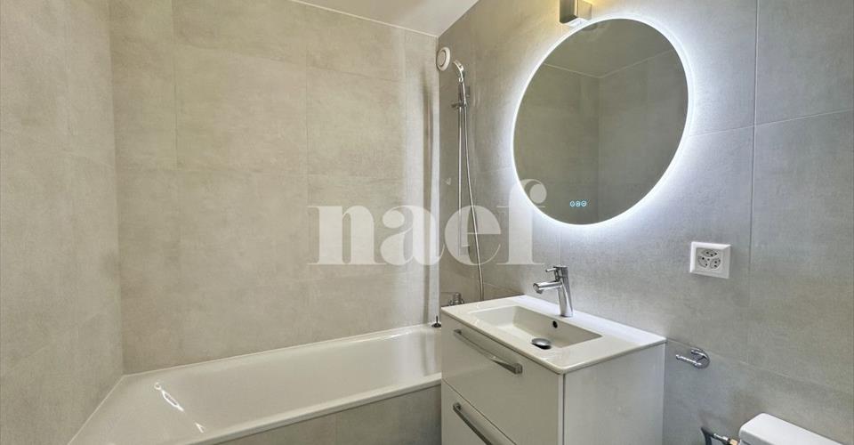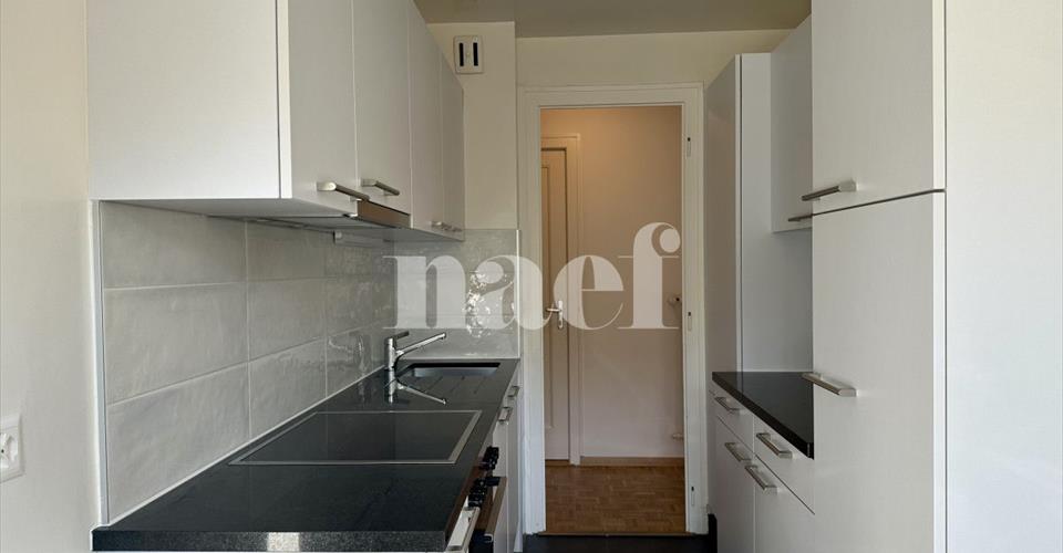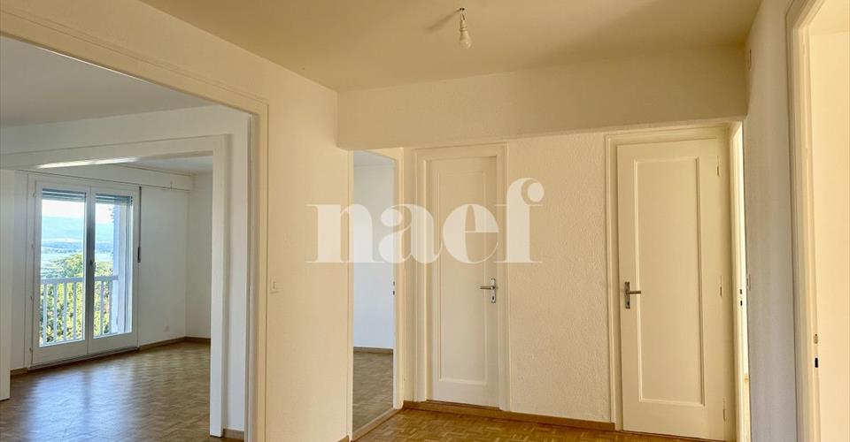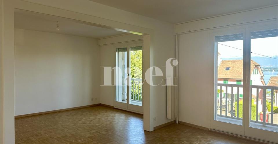 Dans un environnement paisible à proximité du lac Léman, ce logement d’environ 88 m², situé dans un immeuble sans ascenseur, propose des volumes bien répartis. L’espace de vie, composé d’un salon et d’une salle à manger lumineux, s’ouvre sur un balcon orienté nord-ouest offrant une vue dégagée sur le lac. L’agencement comprend également deux chambres, un hall d’entrée spacieux, une salle de bains/WC avec une vasque et son sous-meuble, un WC séparé, ainsi qu’un réduit avec raccordement prévu pour l’installation d’une colonne lave-linge. Le quartier, résidentiel et calme, reste bien connecté grâce aux lignes de bus E et 38, qui assurent un accès direct au centre-ville de Genève et aux communes avoisinantes. Les arrêts Triaz et Anières-Marguerite sont accessibles à pied. À proximité immédiate se trouvent une épicerie, des établissements scolaires, des espaces verts et un accès aux rives du lac, offrant un cadre de vie agréable, entre nature et proximité urbaine. Les charges mensuelles s’élèvent à 195 CHF, en sus du loyer de 2’900 CHF, et couvrent notamment le chauffage et l’eau chaude. Deux solutions de stationnement sont proposées en option : une place extérieure à 120 CHF par mois et un box fermé à 200 CHF par mois. Le bien est disponible immédiatement. .