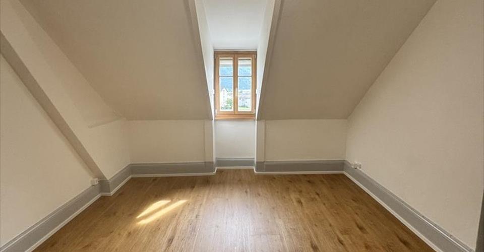 Très bel appartement rénové complètement dans les combles d’un immeuble de 4 appartements, SANS ascenseur, situé à la Route de l’Arche 12 à Bex dans un endroit calme. Agréable balcon Sud. Beau jardin à disposition Loyer CHF 2’010.- + acomptes de chauffage et eau chaude CHF 390.-. place de parc à disposition au prix de CHF 60.-/mois