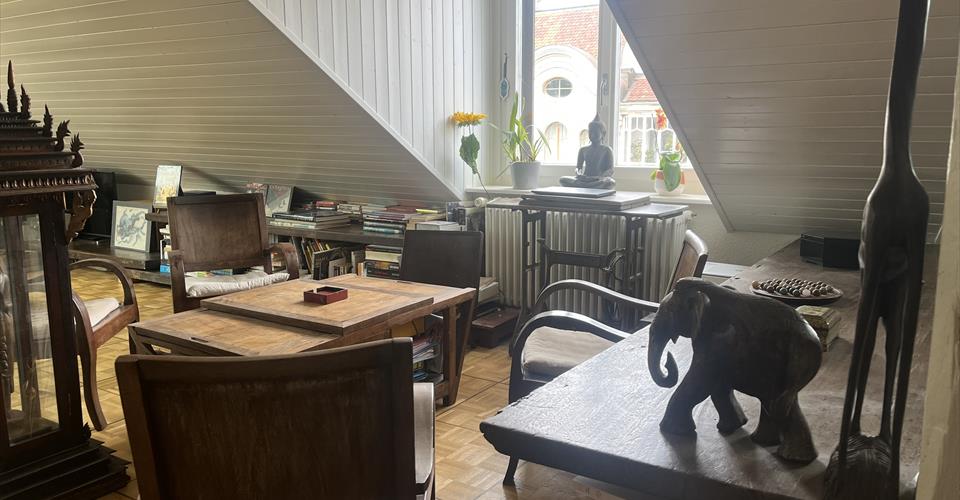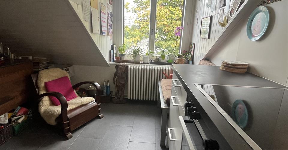 Genève – Quartier des Eaux-Vives Situé au 5ᵉ et dernier étage d’un immeuble avec ascenseur, cet appartement en attique de 5,5 pièces et 114 m² séduit par son charme unique, sa luminosité exceptionnelle et ses poutres apparentes. Niché dans un quartier résidentiel calme et sans vis-à-vis, à deux pas de la gare des Eaux-Vives, il offre un cadre de vie idéal au cœur de Genève. Disposition intérieure : 3 chambres confortables Grand salon lumineux ouvert sur une spacieuse salle à manger Cuisine ouverte moderne et entièrement équipée Salle de bain avec baignoire, lavabo, WC et raccordement pour machine à laver WC visiteurs séparé Cave privative Garage à vélos à disposition dans l’immeuble Proximité immédiate : Transports : Léman Express, Tram 12 & 17, Bus 11 au pied de l’immeuble | Bus 25, 5, 1, 9, 33 et A à 4 minutes à pied Écoles : primaires (5 min) et secondaires (10 min) accessibles à pied Espaces verts : Parc La Grange (7 min) et lac Léman (10 min) Commodités : Migros, Coop, Migrolino, FNAC et commerces variés à proximité immédiateVoie verte à 5 minutes (idéal pour promenades et mobilité douce) Les atouts de l’appartement : Dernier étage avec ascenseur Très lumineux, sans vis-à-vis Charme de l’ancien avec poutres apparentes Quartier calme et agréable Emplacement central et recherché Conditions : Disponibilité : dès le 1er octobre 2025 Loyer mensuel : CHF 3’520.– Charges : CHF 370.– Total : CHF 3’890.–