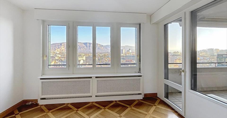 Vivez l’expérience ultime de la vie urbaine dans cet appartement somptueux situé au Seujet, au 9ème étage. Profitez de prestations haut de gamme et d’une vue spectaculaire sur la cathédrale, la rade et le jet d’eau. Points forts de l’appartement : – Grand hall d’entrée avec armoires intégrées, offrant un accueil chaleureux et élégant – Toilettes visiteurs – Séjour lumineux avec accès balcon et vue panoramique – Grande salle à manger parfaite pour recevoir vos invités – Cuisine entièrement équipée, avec îlot pour repas et accès balcon (frigo américain et grand congélateur, four et micro ondes, lave-linge) – Chambre à coucher – Salle de douche -Chambre à coucher avec salle de bains attenante Place de parking disponible à la location au Seujet