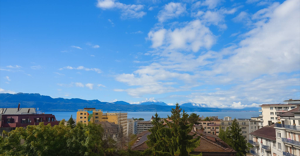 Situé dans le quartier Sous-Gare de Lausanne, à proximité de toutes les commodités, magnifique logement de 5.5 pièces en duplex avec vue sur le lac. D’une surface habitable de près de 130 m2, il est composé de la manière suivante: Au rez-de-chaussée: – Hall avec armoire murale – Séjour – Cuisine entièrement agencée – WC séparé A l’étage: – Grande pièce à vivre – Salle de bains/WC – Salle de douche – 2 chambres à coucher – 1 chambre supplémentaire – Terrasse panoramique avec vue sur le lac Ce logement est disponible dès le 1er octobre 2025 au prix de CHF 4’250.- + CHF 220.- de charges, soit un total de CHF 4’470.-. En cas d’intérêt et pour visiter cet objet, nous vous remercions de bien vouloir prendre contact avec la concierge uniquement par SMS. Pour tout renseignement complémentaire, notre service location se tient à votre entière disposition par téléphone ou par courriel à l’adresse.