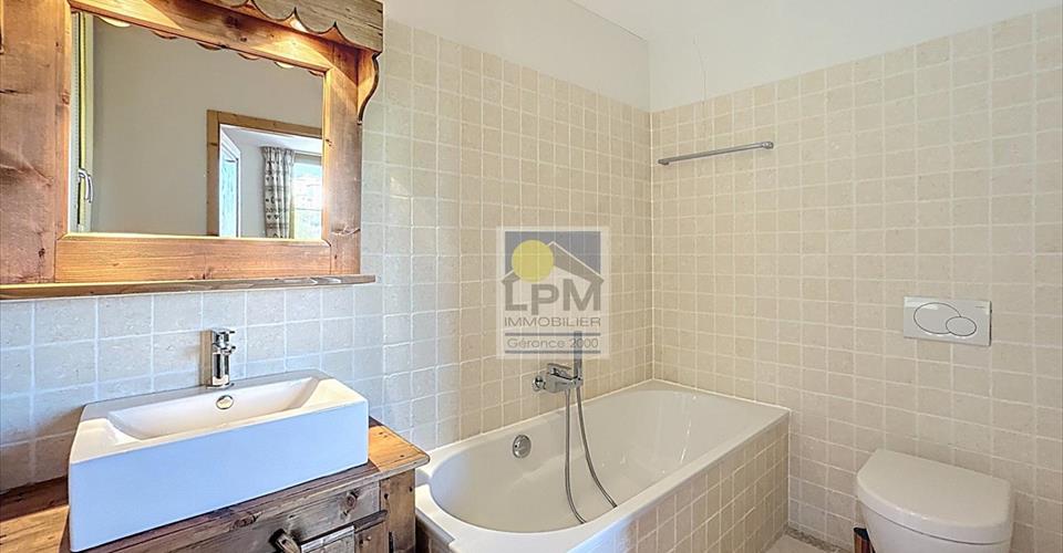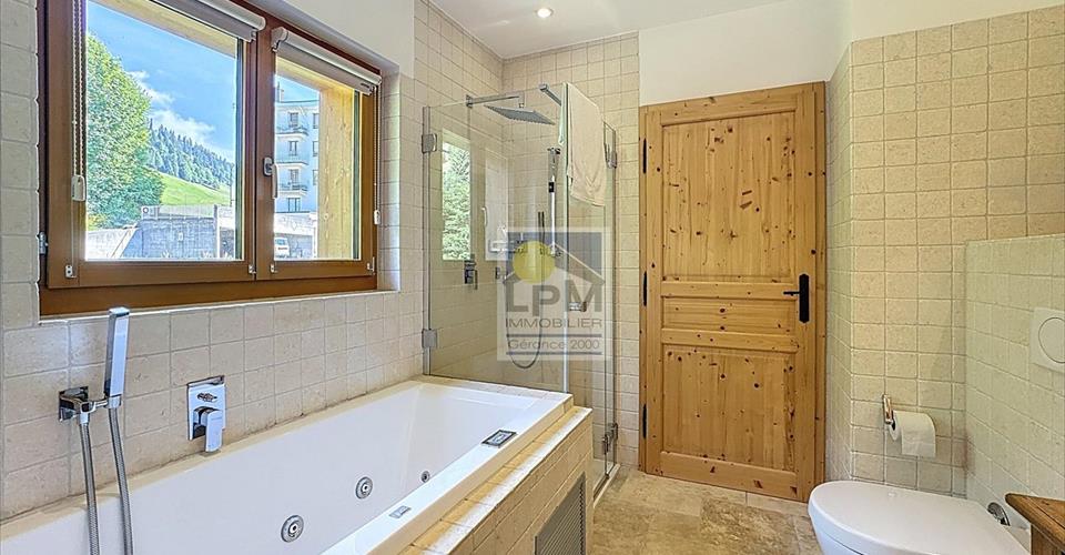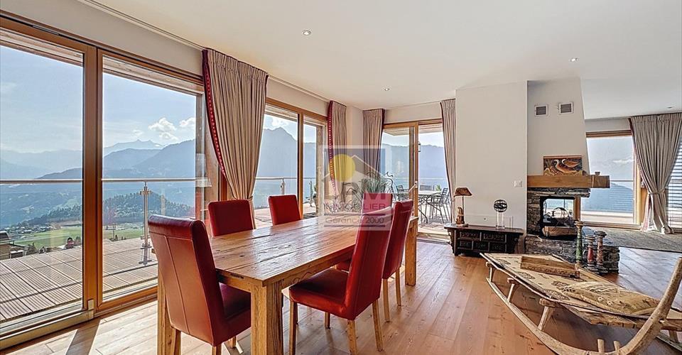 Magnifique appartement chaleureux vue sur les montagnes ! Très spacieux, lumineux et familial, vue imprenable sur les Alpes un cadre verdoyant en été et féérique en hiver! Appartement en duplex de 145m2, complètement meublé avec un esprit montagnard, possible de louer à l’année. Il contient : Au 3? étage : – WC visiteurs – 2 chambres à coucher avec balcon orienté sud – 1 chambre à coucher avec balcon, salle de bain attenante (baignoire + WC) Au 4? étage : – 1 chambre à coucher avec dressing, accès à une grande terrasse, salle de bain privative avec baignoire à bulles, douche et WC – Cuisine ouverte – Accès direct au séjour par escalier ou ascenseur, avec cheminée – Terrasse sur le toit équipée d’un grill et d’une table à manger – Salle de douche avec WC Idéalement situé dans la rue du Commerce, à proximité immédiate de toutes les commodités ! Loyer mensuel 3’550.- Forfait de charges 450.- 2 places de parc en garage 300.-