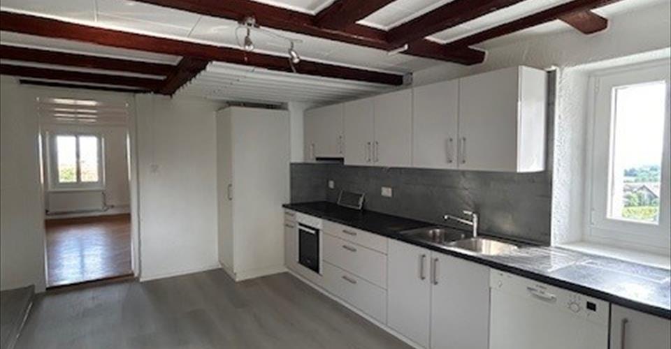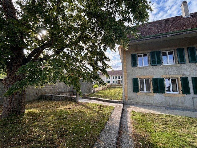 Situé dans une ferme villageoise du joli village de Montmagny, à deux pas du lac de Morat, ce charmant 5.5 pièces de près de 120 m2 en duplex a été récemment rénové. Il se compose, au rez-de-chaussée, de deux belles chambres avec de magnifiques parquets, dont l’une est flanquée d’un grand réduit, d’une salle de bains avec douche et lavabo, d’un WC séparé et d’une grande buanderie, dans laquelle vous pourrez installer votre colonne de lavage/séchage. Depuis le rez-de-chaussée, on accède au grand jardin en trois parties, agrémenté d’un magnifique tilleul qui dispense une agréable fraîcheur et qui abrite un coin barbecue. A l’étage se trouvent la magnifique cuisine habitable, entièrement agencée avec lave-vaisselle, cuisinière vitrocéramique, four, grand réfrigérateur et de nombreux rangements, un grand séjour, une jolie troisième chambre et un bureau. Le logement dispose d’un grand galetas. Un place de parc extérieure est également disponible pour un loyer supplémentaire de CHF 50.00 par mois. Ce logement s’adresse à une clientèle discrète recherchant le calme et la proximité avec la nature. Une visite s’impose !